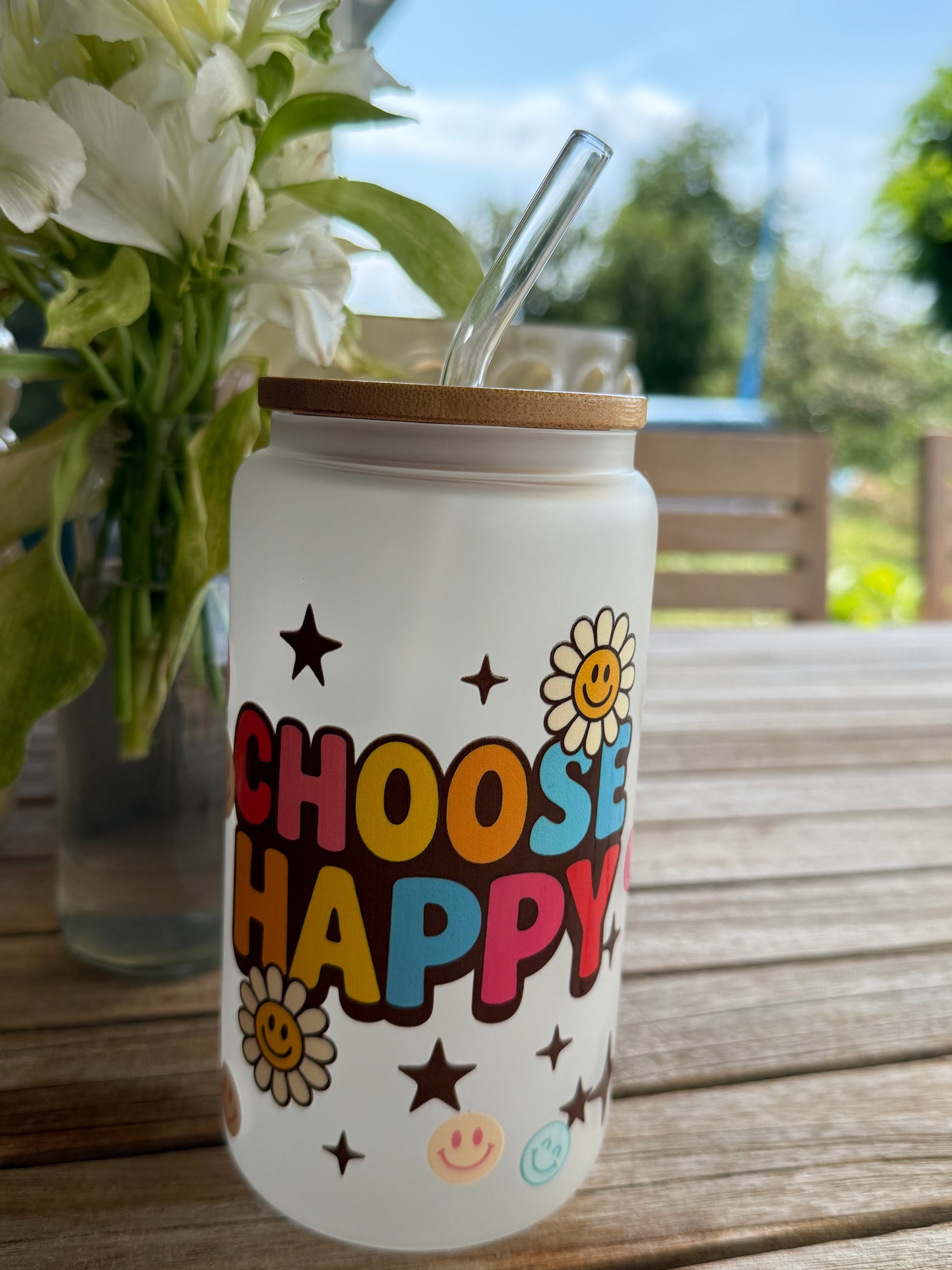 🌈 Frosted Design-Trinkglas „CHOOSE HAPPY“ – Original Art by Nic