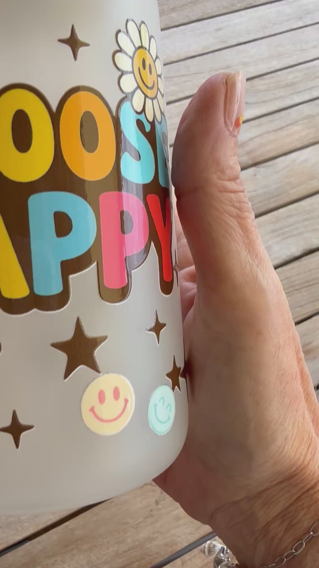 Mit diesem farbenfrohen Trinkglas aus der Art by Nic Kollektion setzt du ein echtes Statement: „CHOOSE HAPPY“ – groß, bunt und mit einem Lächeln, das ansteckt.