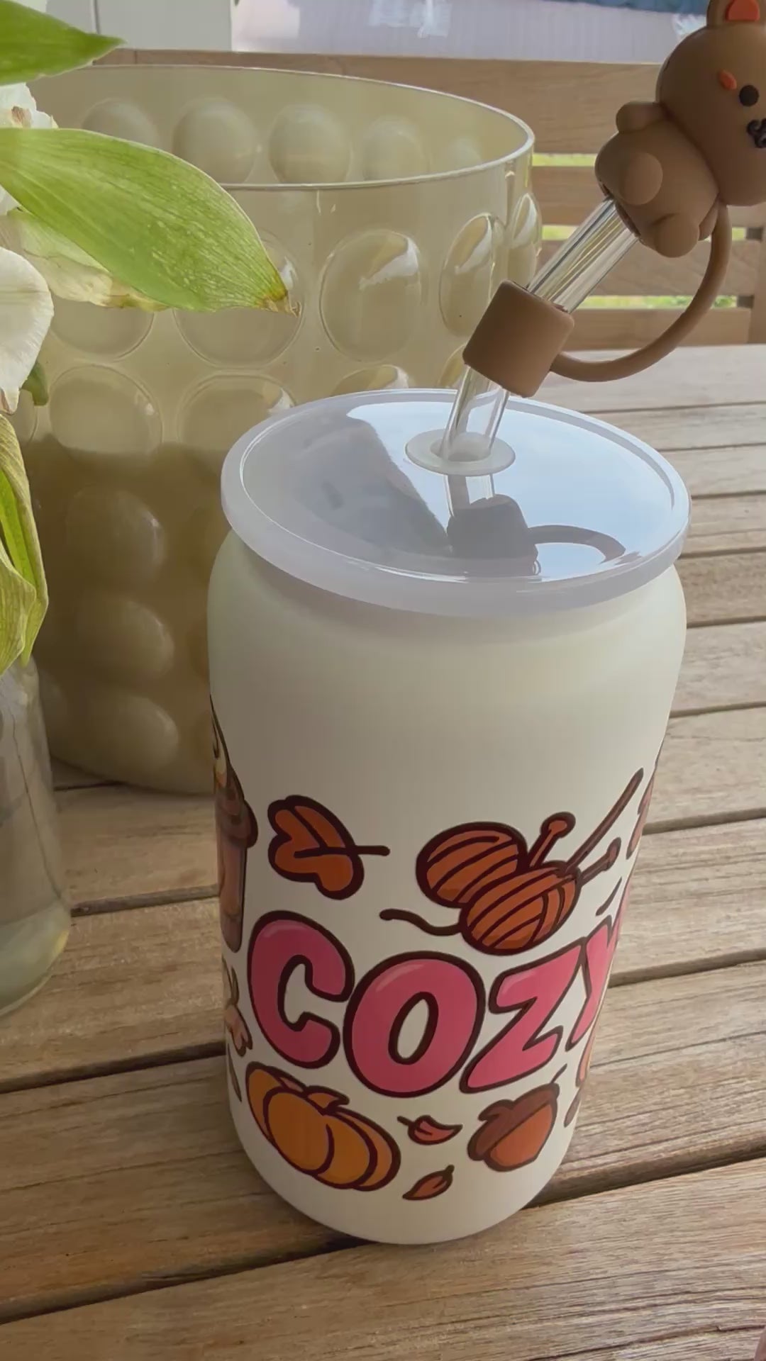 - Kombiniere deinen Becher mit einer süßen Strohhalmabdeckung – wie dem Bären-Clip 🐻, der perfekt zum herbstlichen Look passt