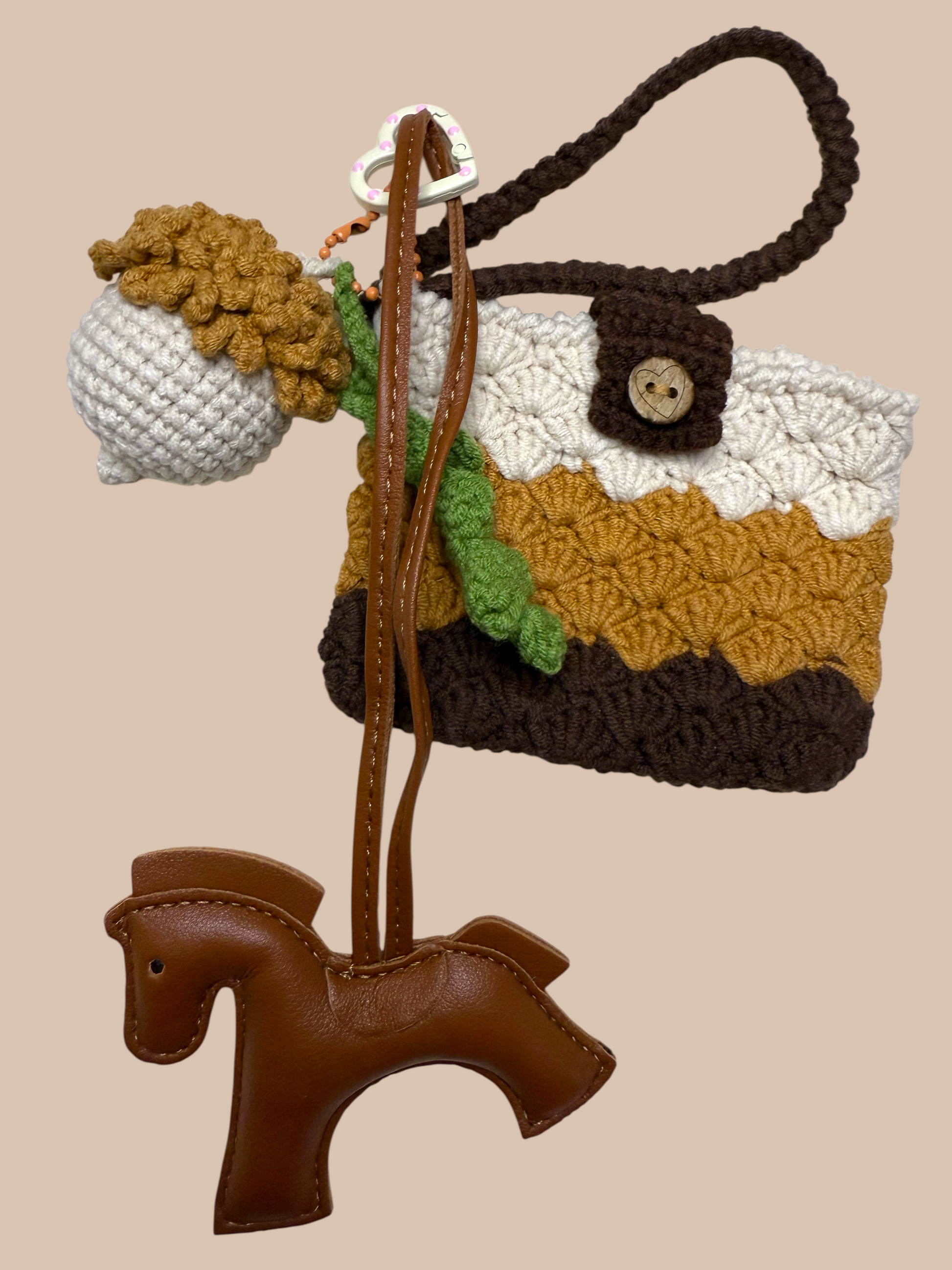 Taschen- und Schlüsselanhänger ist nicht einfach nur ein Accessoire – er ist ein echtes Statement ✨. Mit seiner liebevollen Kombination aus gehäkelter Mini-Tasche, Eichel-Detail und kunst-Lederpferd bringt er jede Menge Charme, Natur-Feeling und Individualität an deine Tasche oder deinen Schlüsselbund 🌿. Perfekt für alle, die es besonders und ein bisschen verspielt mögen 💛.