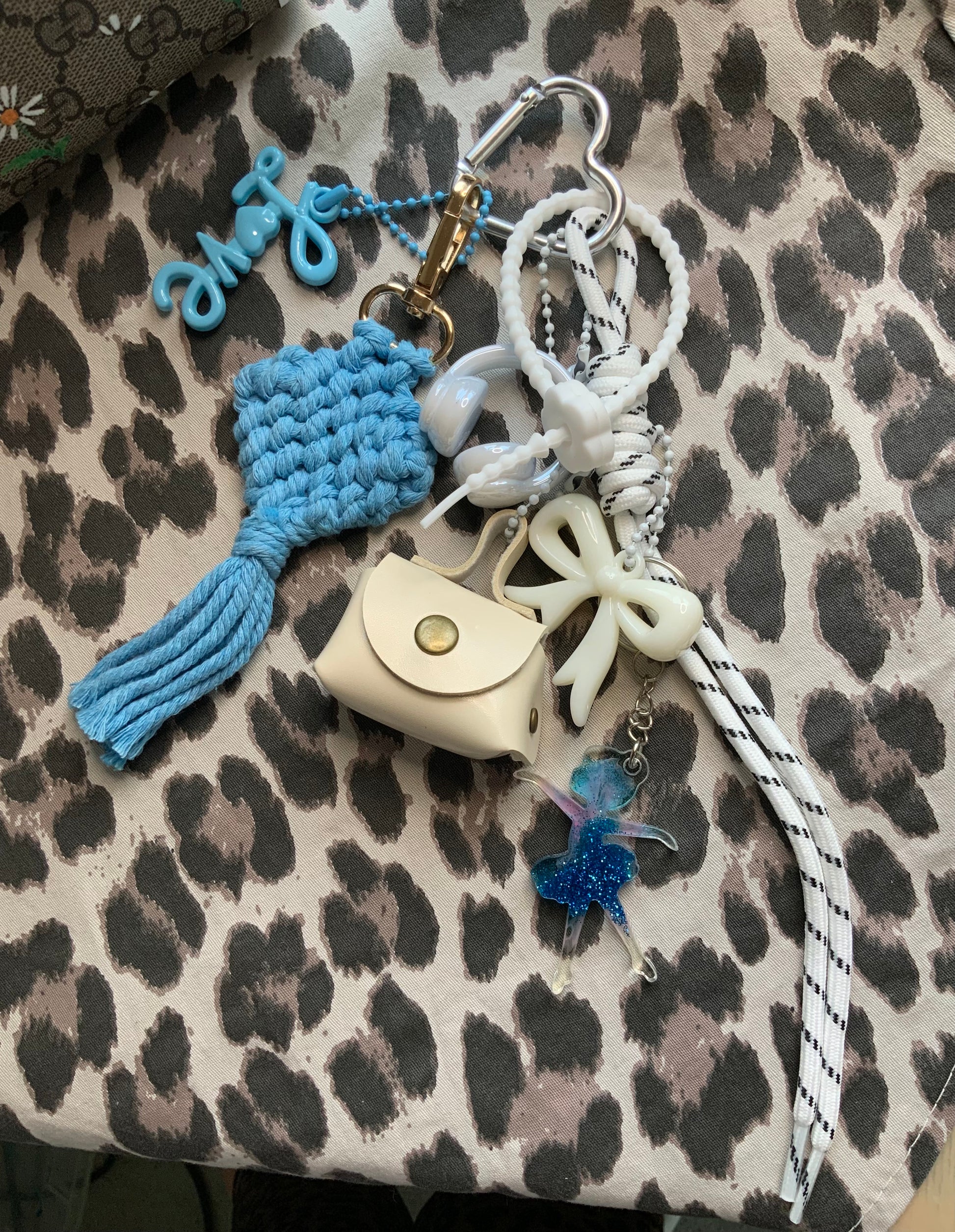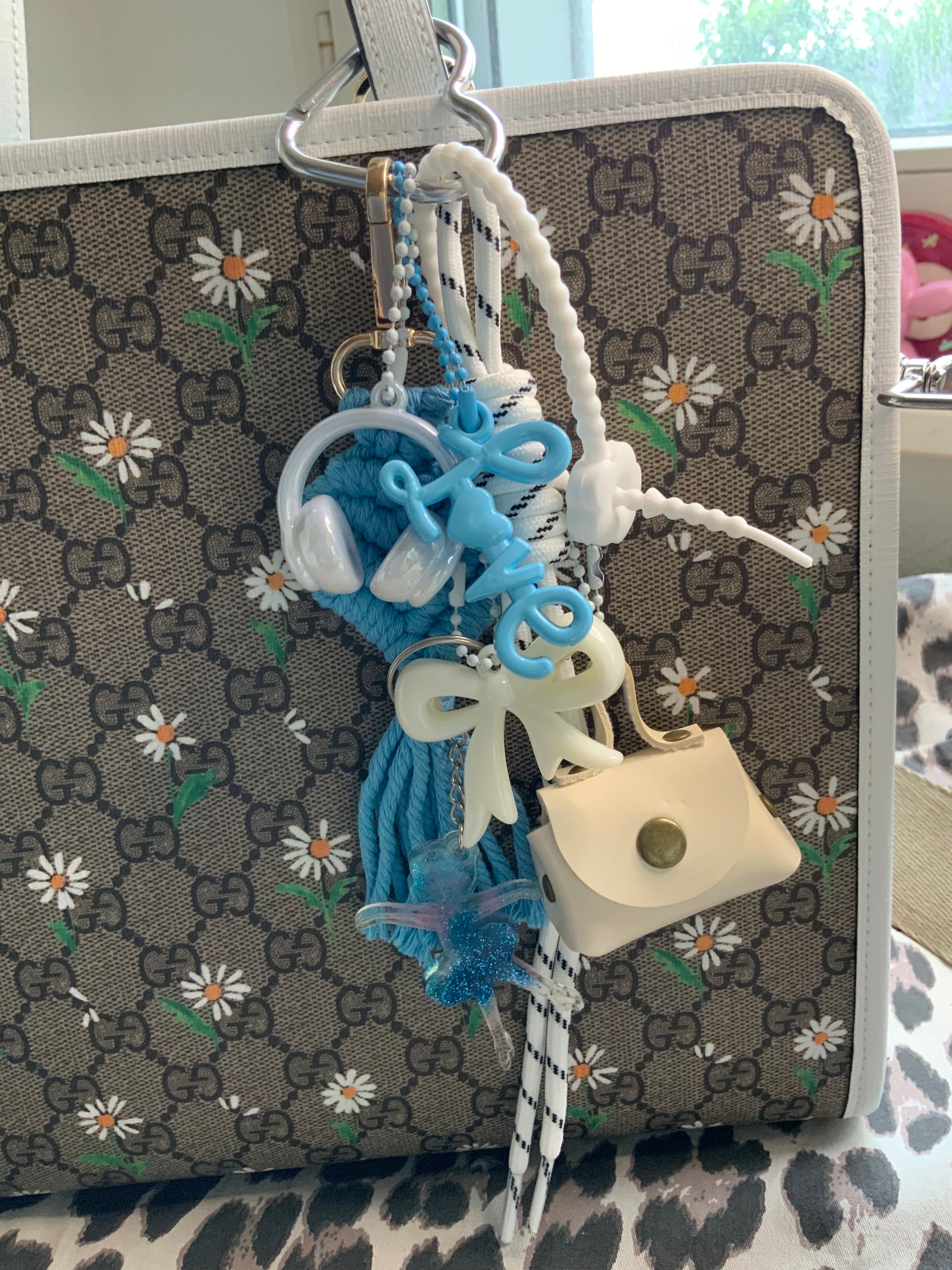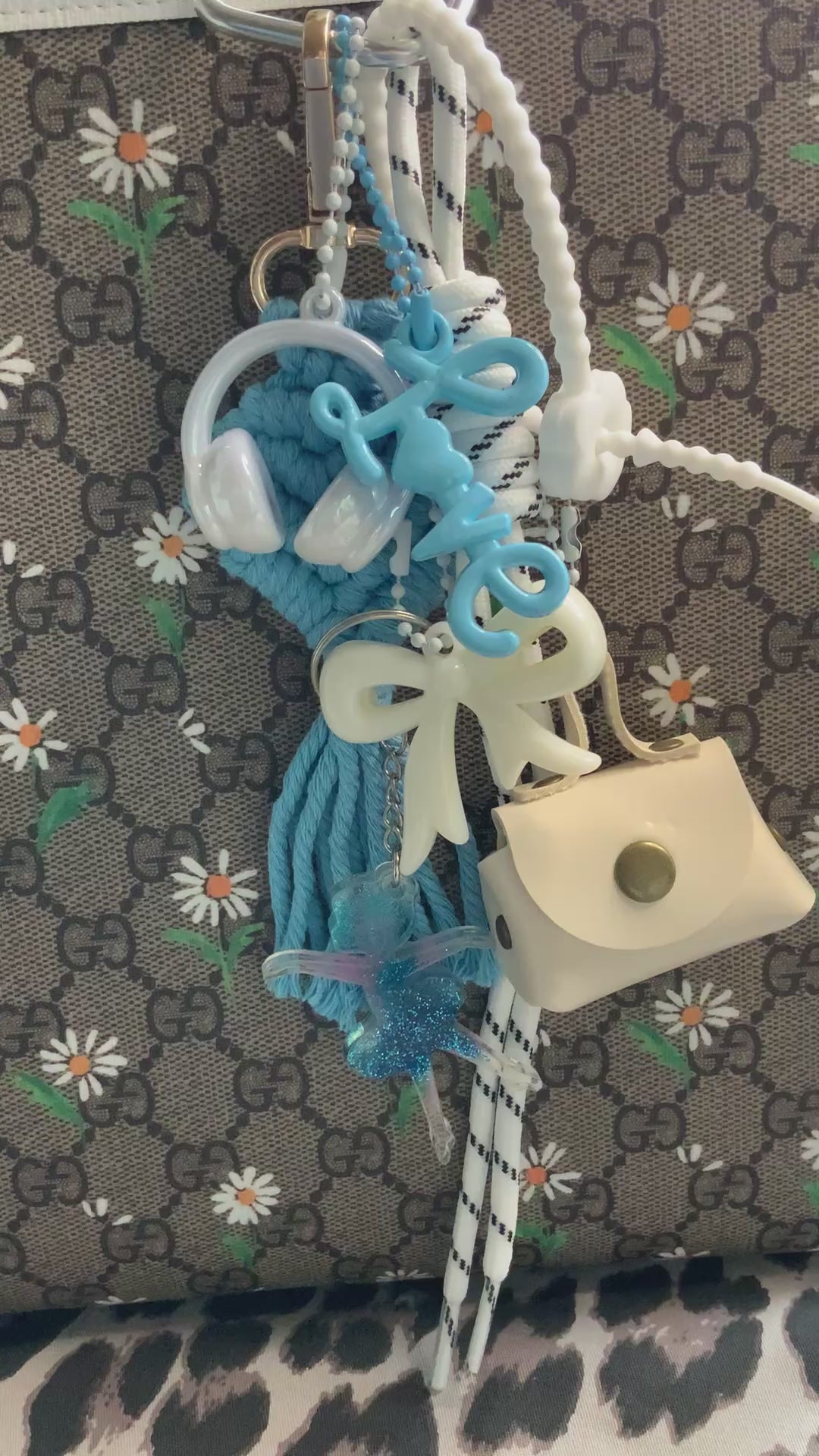 💙 Hellblauer Schriftzug-Charm + Herz-Karabiner – leicht zu befestigen