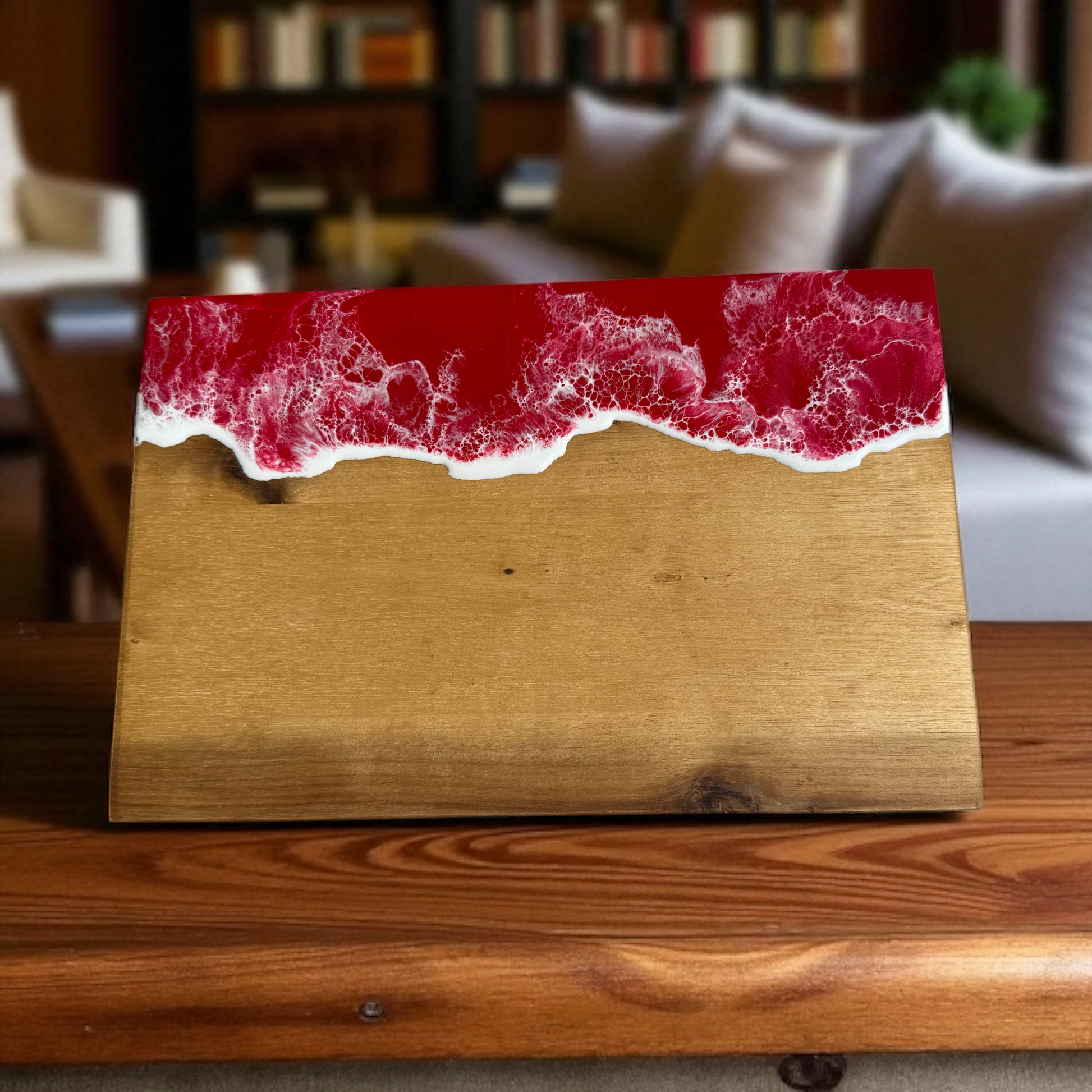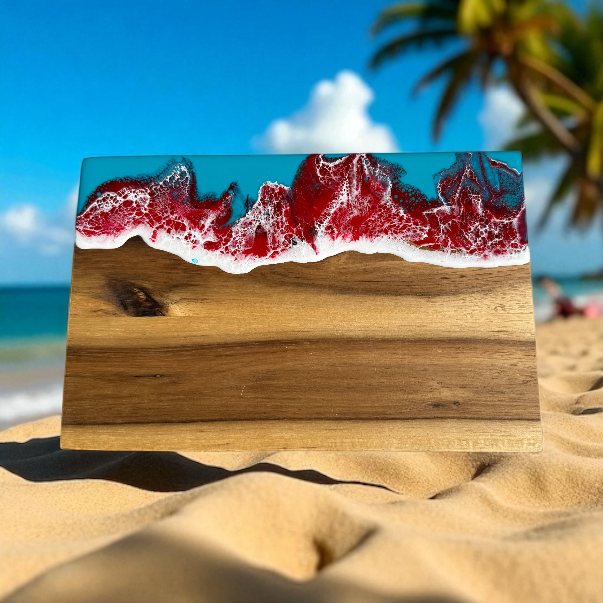 🌊 Handgegossenes Ocean Art Schneidebrettchen aus Akazienholz