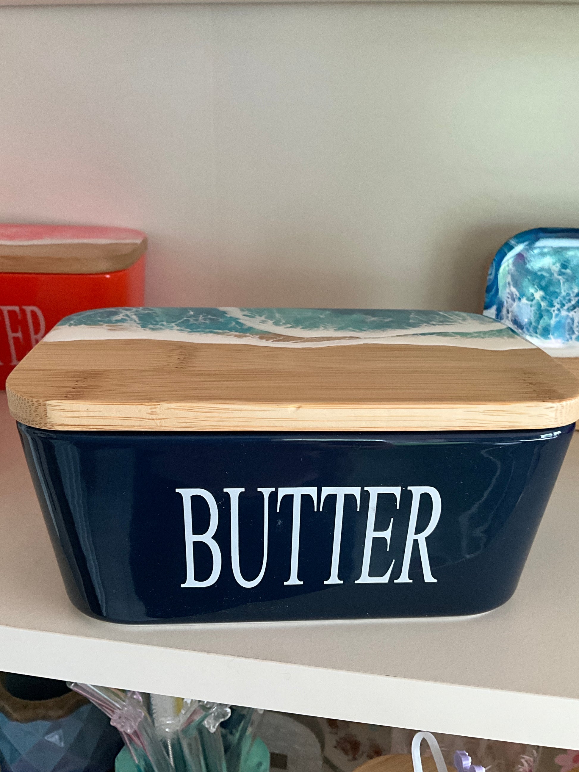 Butterdose mit Ocean Art Deckel aus Resin Bambus Keramik handveredelt maritime Kuechendeko Geschenkidee Unikat Küchenaccessoire