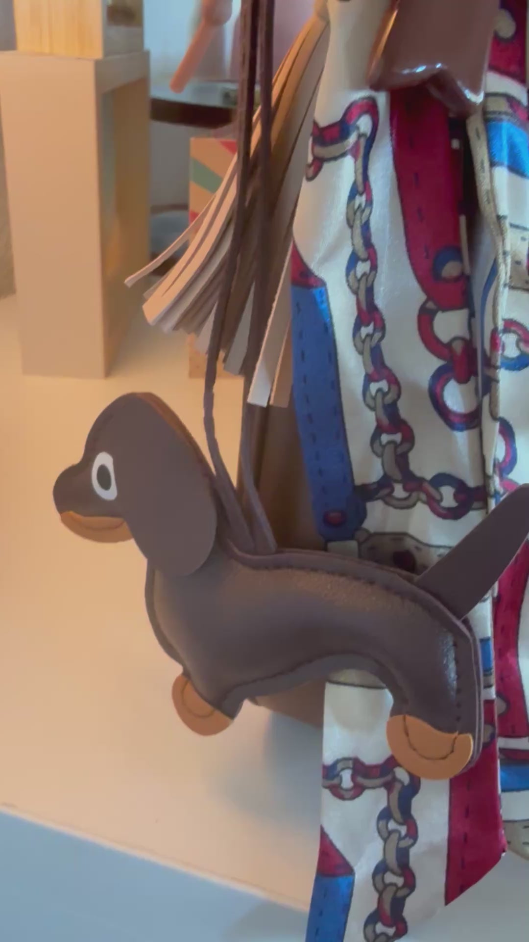 Der handverlesene Taschenanhänger „Dackel Chic“ vereint Modeflair mit tierischer Freude.
