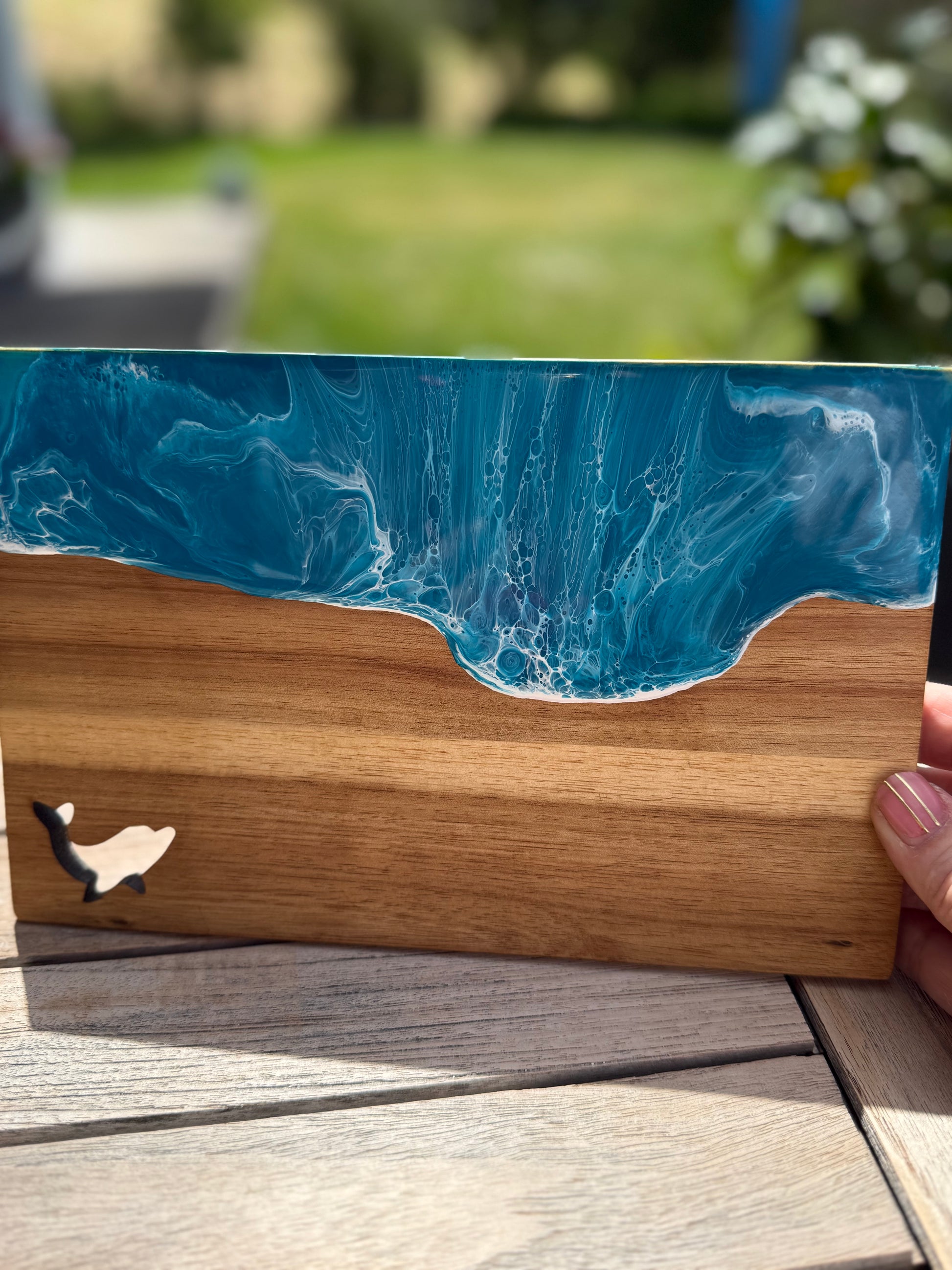 „Delfinträume – Resin-Brettchen mit Delfin-Cutout“