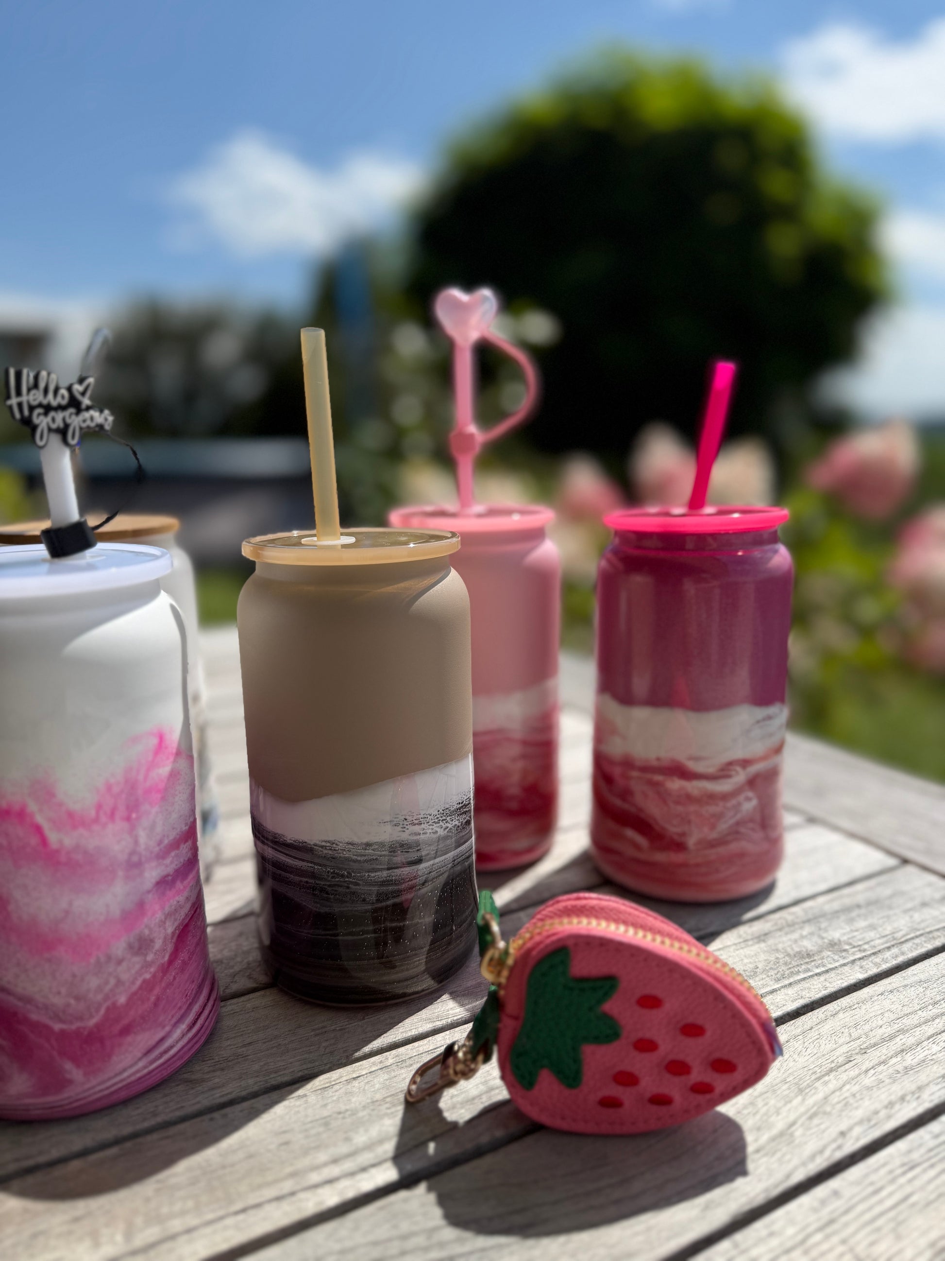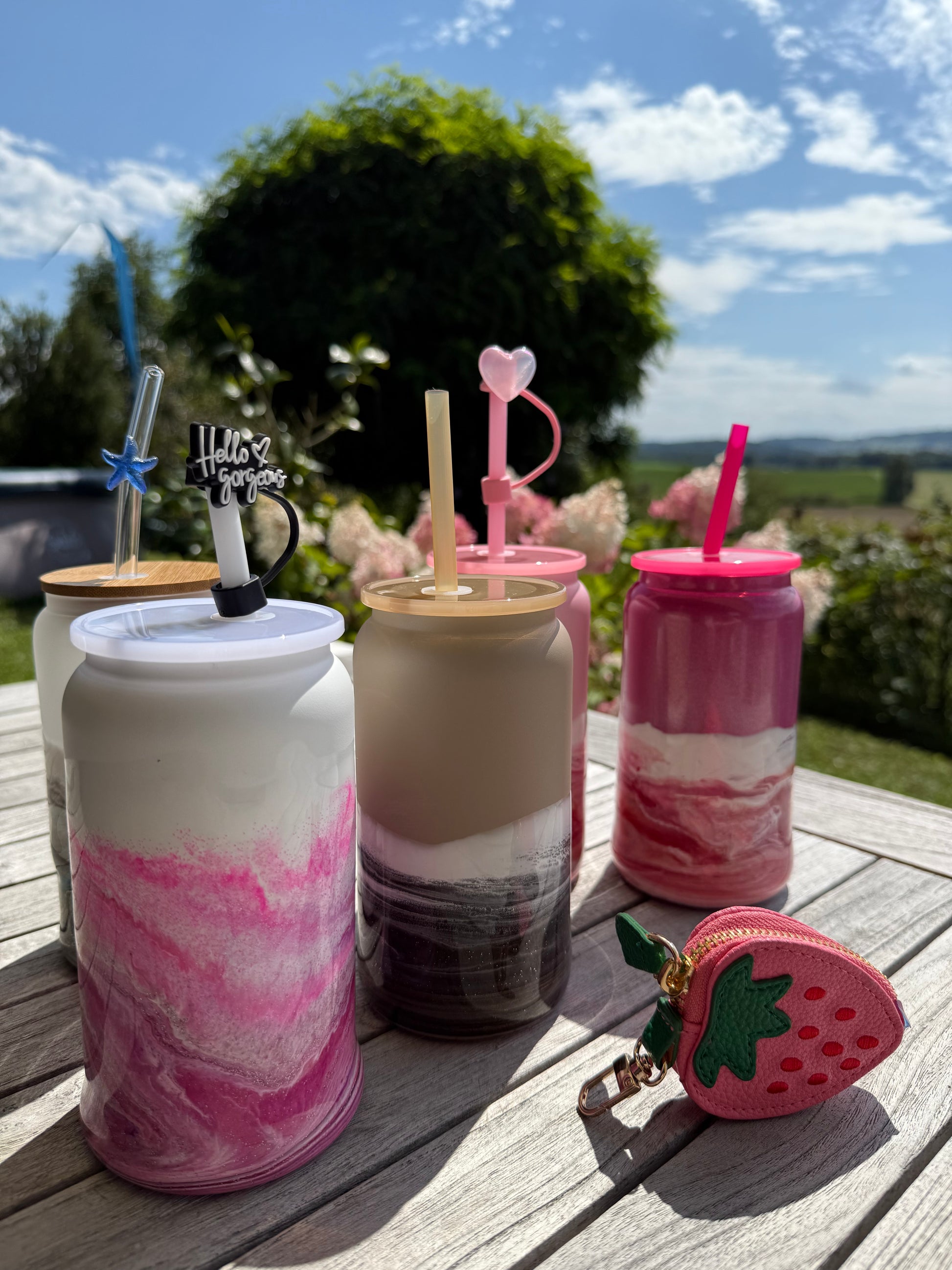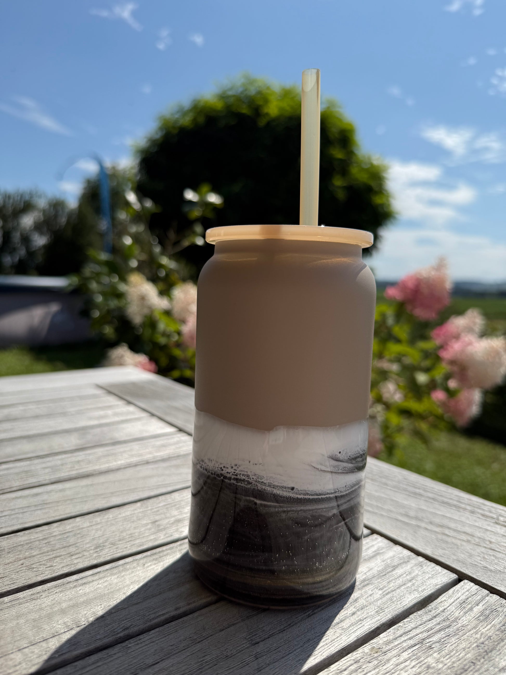 Diese doppelwandigen Edelstahl-Thermobecher (16oz) haben eine matte Außenfläche und kommen mit passendem Deckel & Strohhalm – farblich abgestimmt zum Look. Jeder Becher wird von mir von Hand gegossen – du wählst bis zu 3 Farben (plus Weiß), und ich lasse daraus dein ganz persönliches Ocean Art Design entstehen. Auf Wunsch kommt noch ein Hauch Glitzer ✨ dazu!