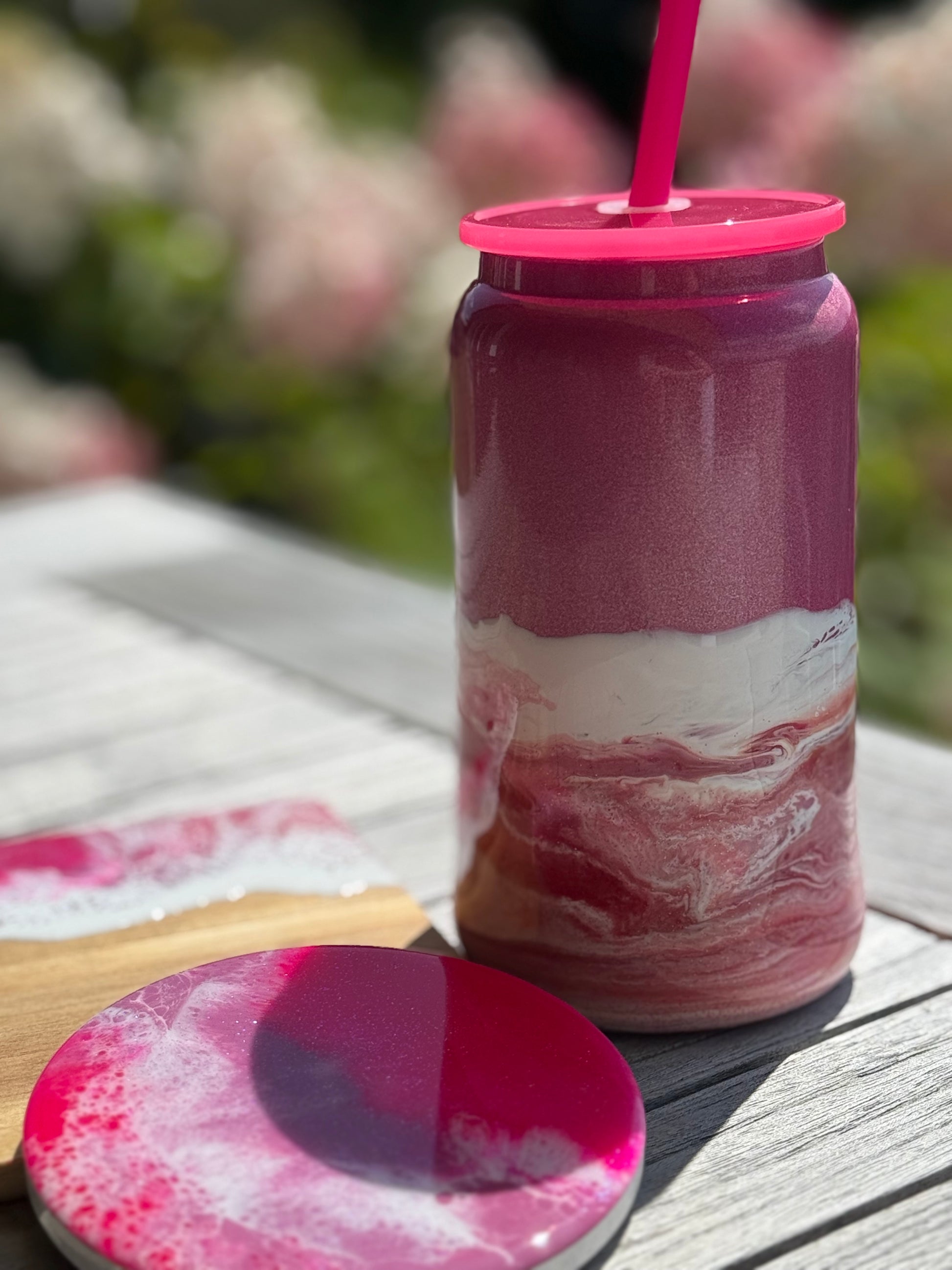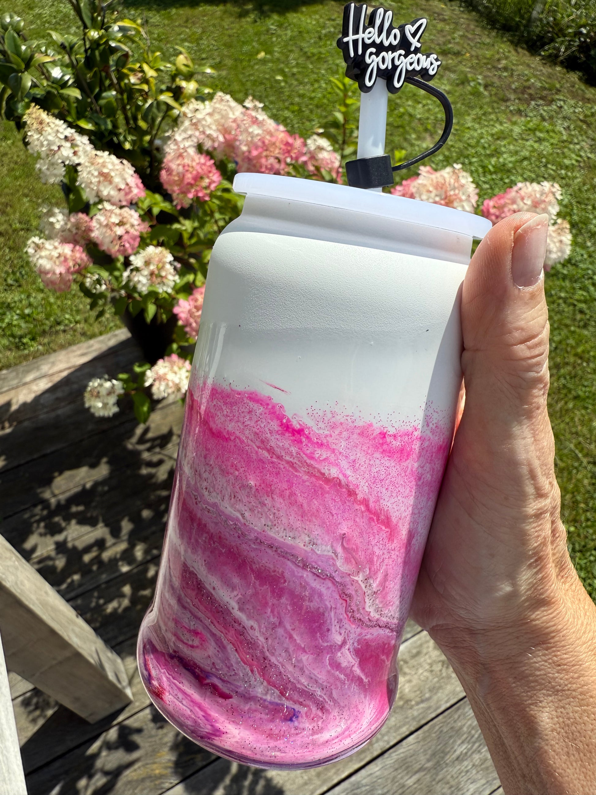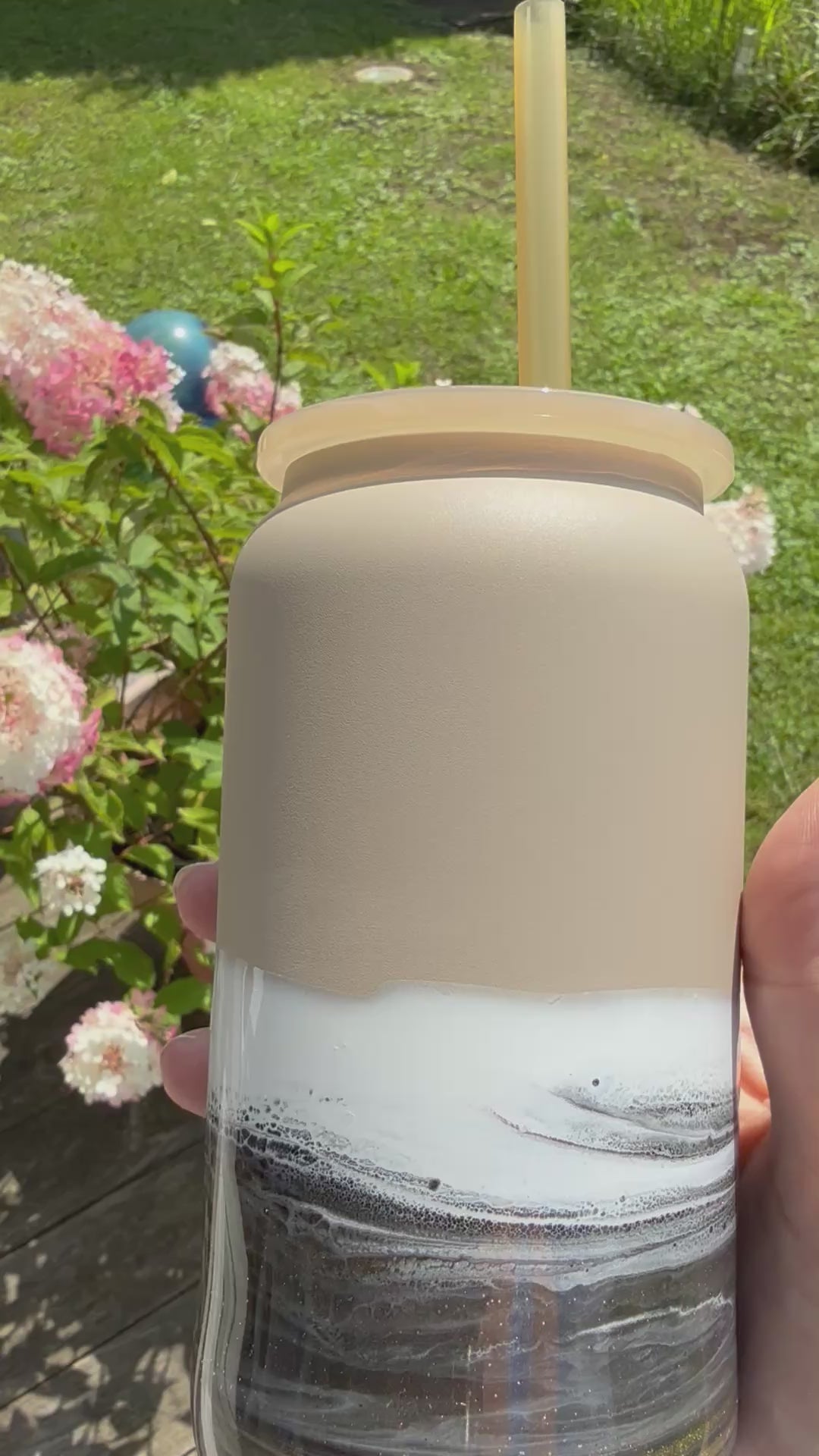 Diese doppelwandigen Edelstahl-Thermobecher (16oz) haben eine matte Außenfläche und kommen mit passendem Deckel & Strohhalm – farblich abgestimmt zum Look. Jeder Becher wird von mir von Hand gegossen – du wählst bis zu 3 Farben (plus Weiß), und ich lasse daraus dein ganz persönliches Ocean Art Design entstehen. Auf Wunsch kommt noch ein Hauch Glitzer ✨ dazu!