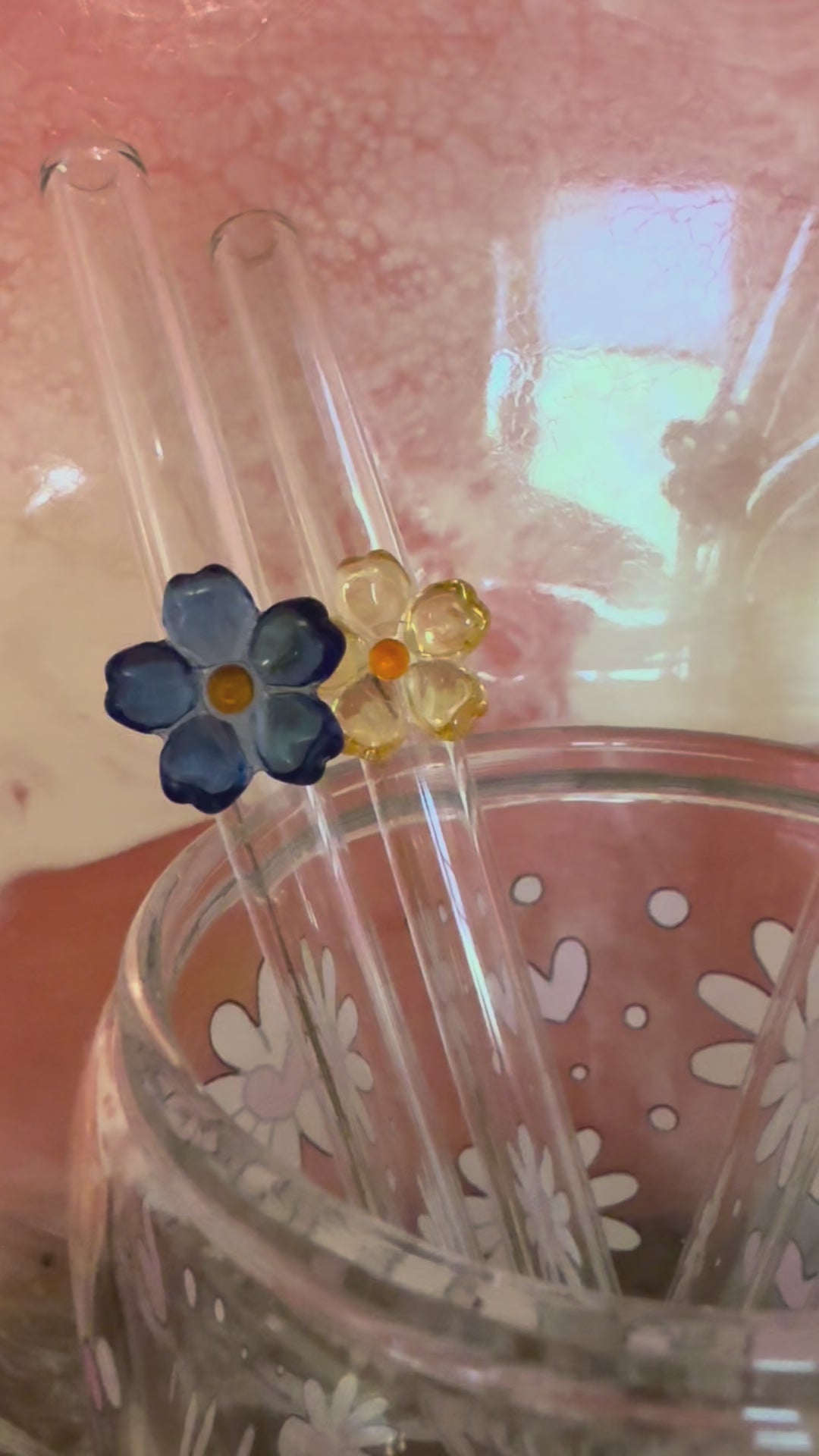 Glasstrohhalme mit Blüten – Pure Flower Vibes 🌸💛💚💙💜