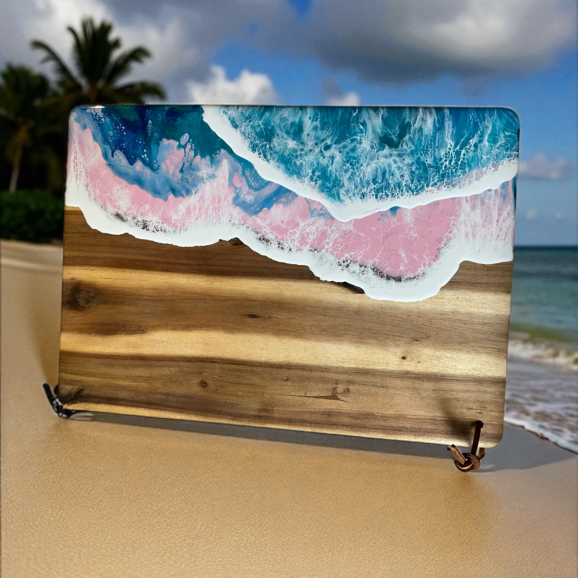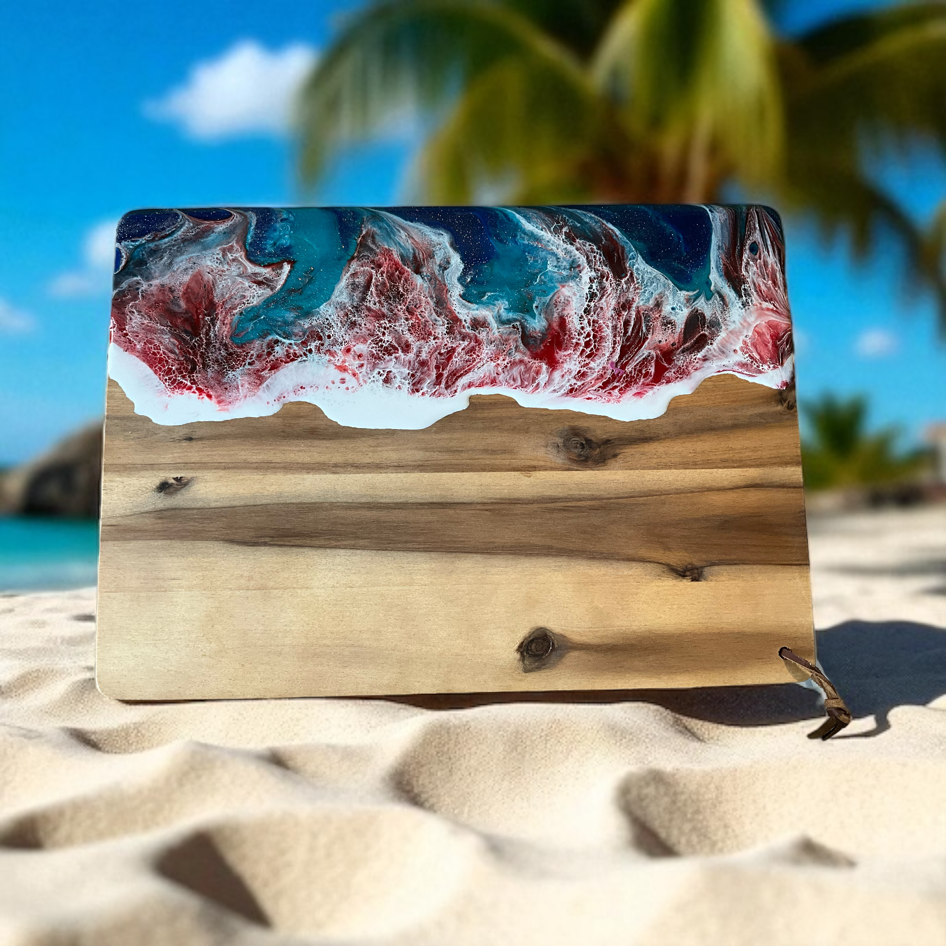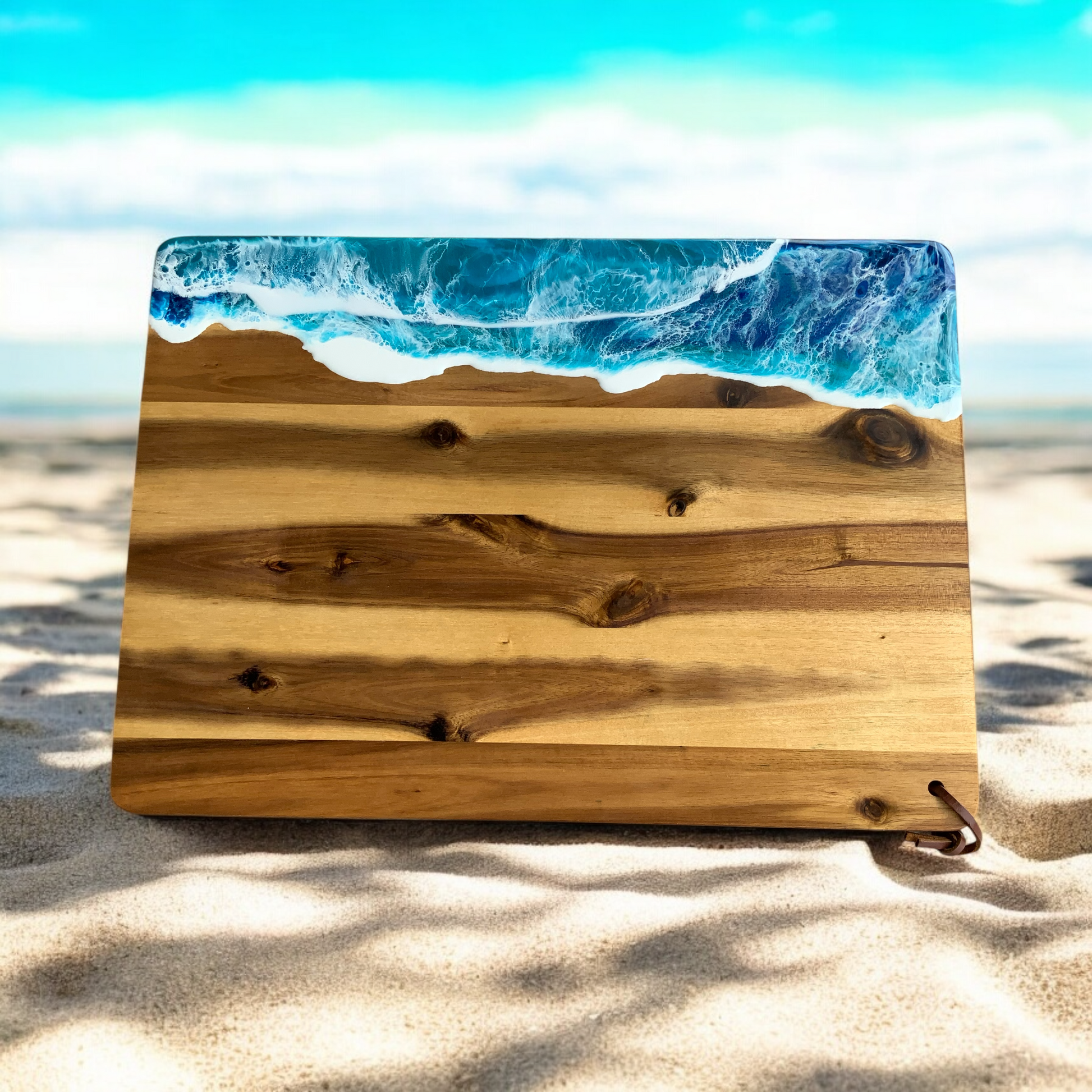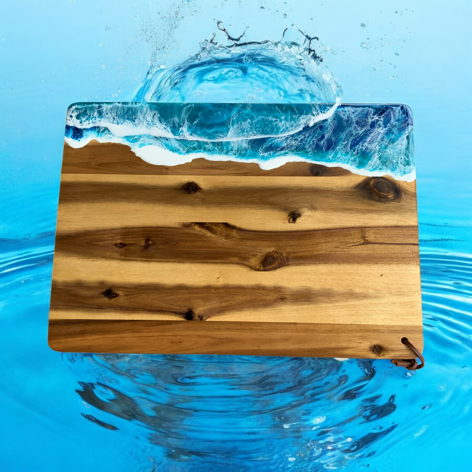 🌊 Handgegossenes Ocean Art Schneidebrett aus Akazienholz