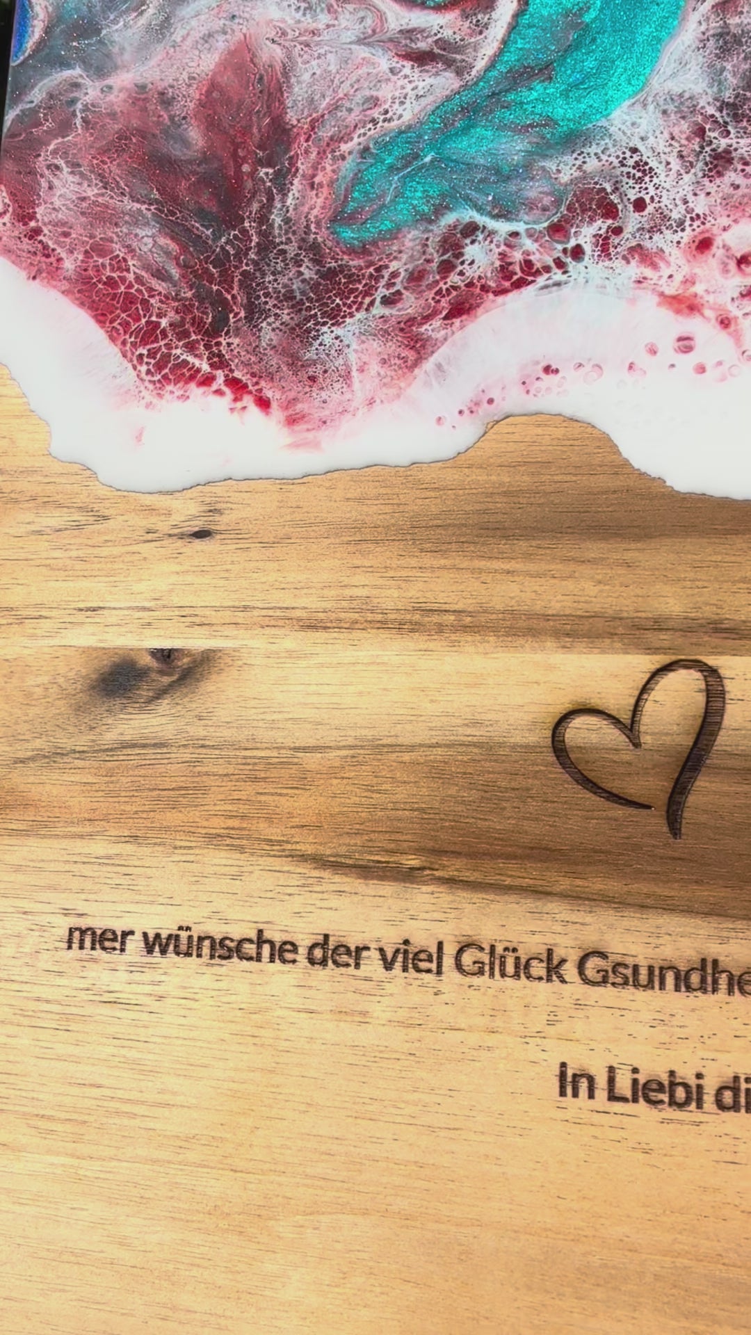 Gerne versehe ich dein Brett mit einer persönlichen Gravur – z. B. einem Namen, einem Schriftzug oder einem kleinen Symbol. Die Gravur erfolgt per Laser und macht dein Kunstwerk noch individueller.