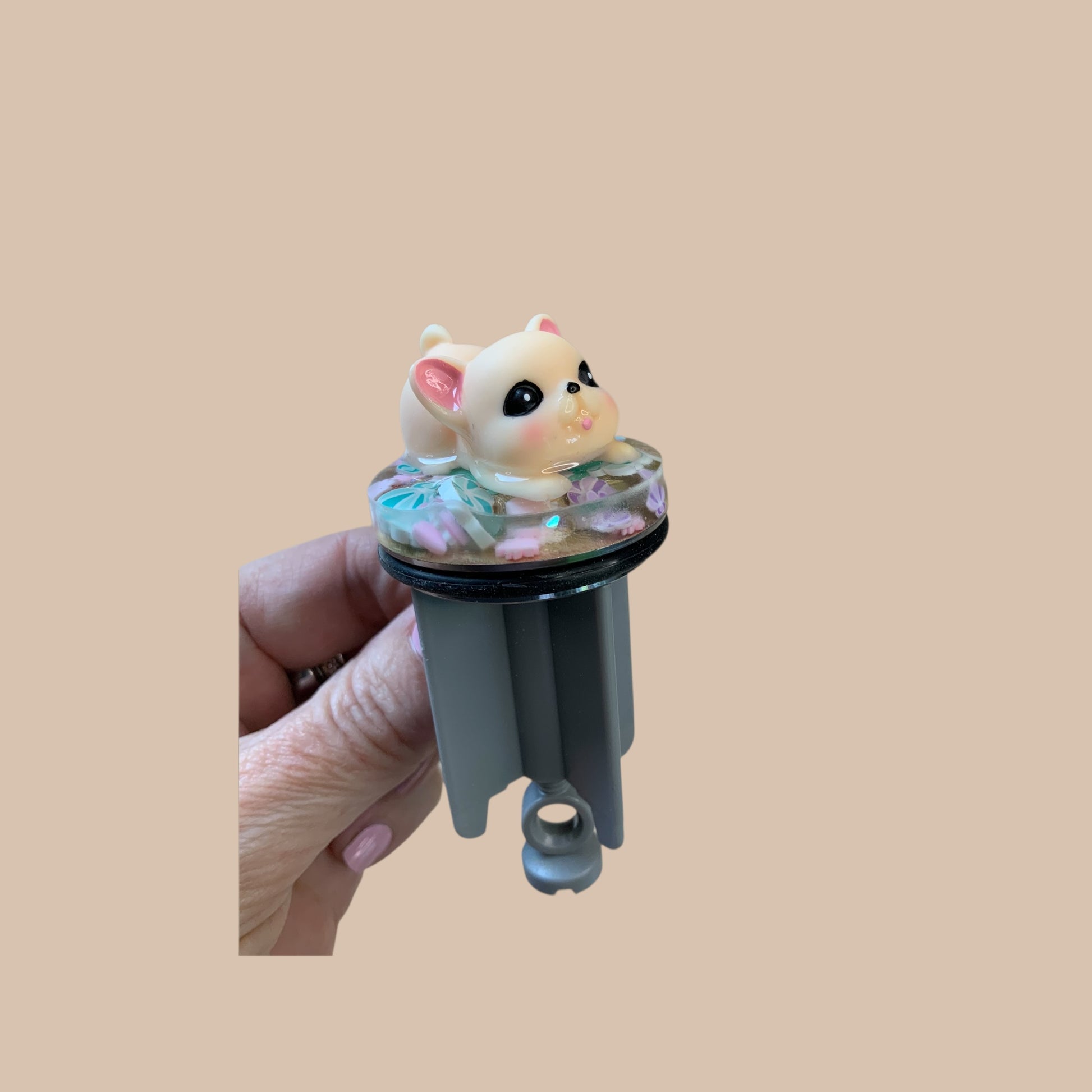 Handveredelter Waschbeckenstöpsel mit süßem Hundemotiv – jedes Stück ein Unikat