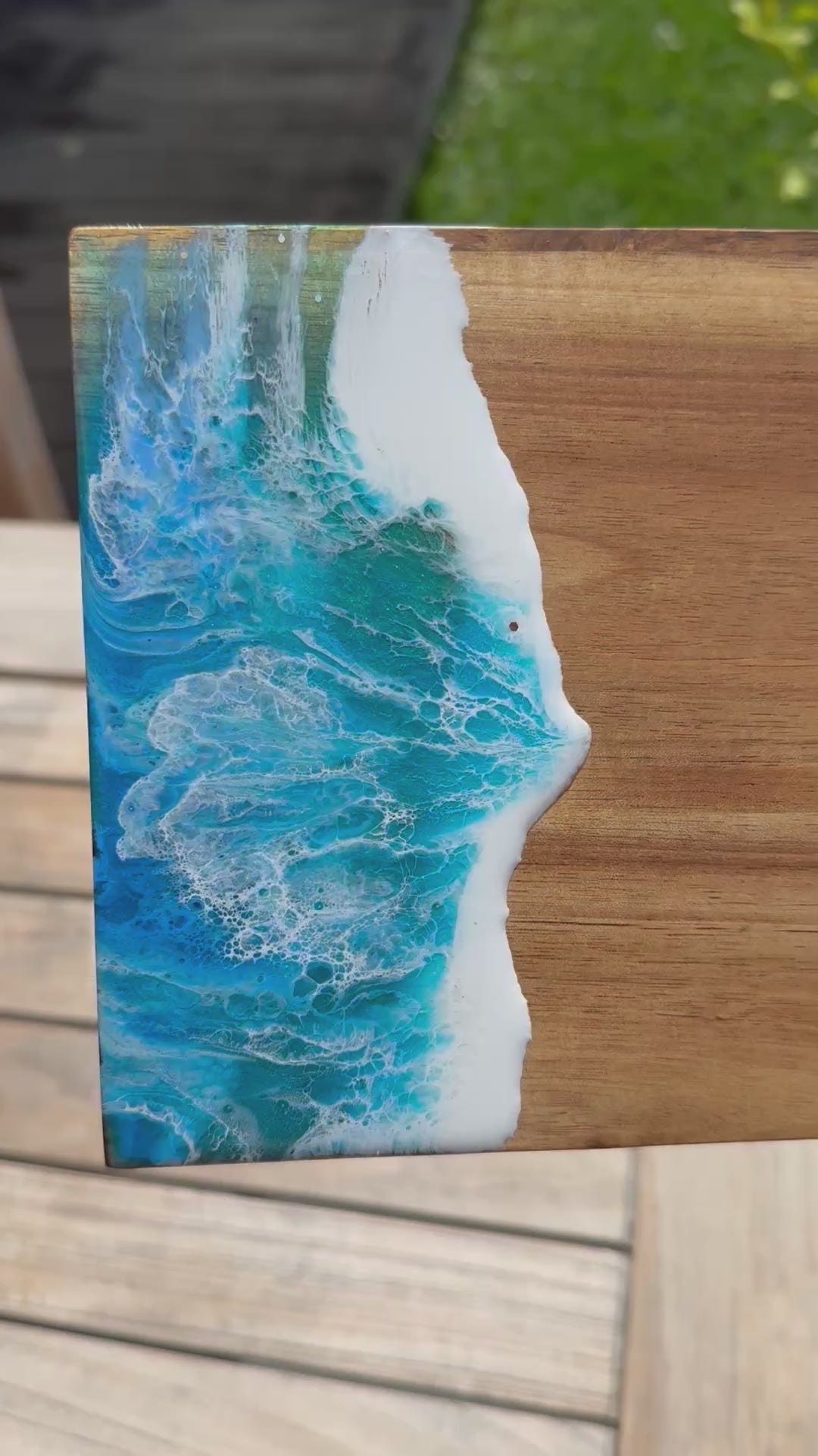 Dieses handveredelte Akazienholzbrett ist ein echtes Herzensstück für alle, die das Meer lieben. Verziert mit meinem einzigartigen Ocean Art Design aus hochwertigem Resin, bringt es die Magie der Wellen direkt in deine Küche.