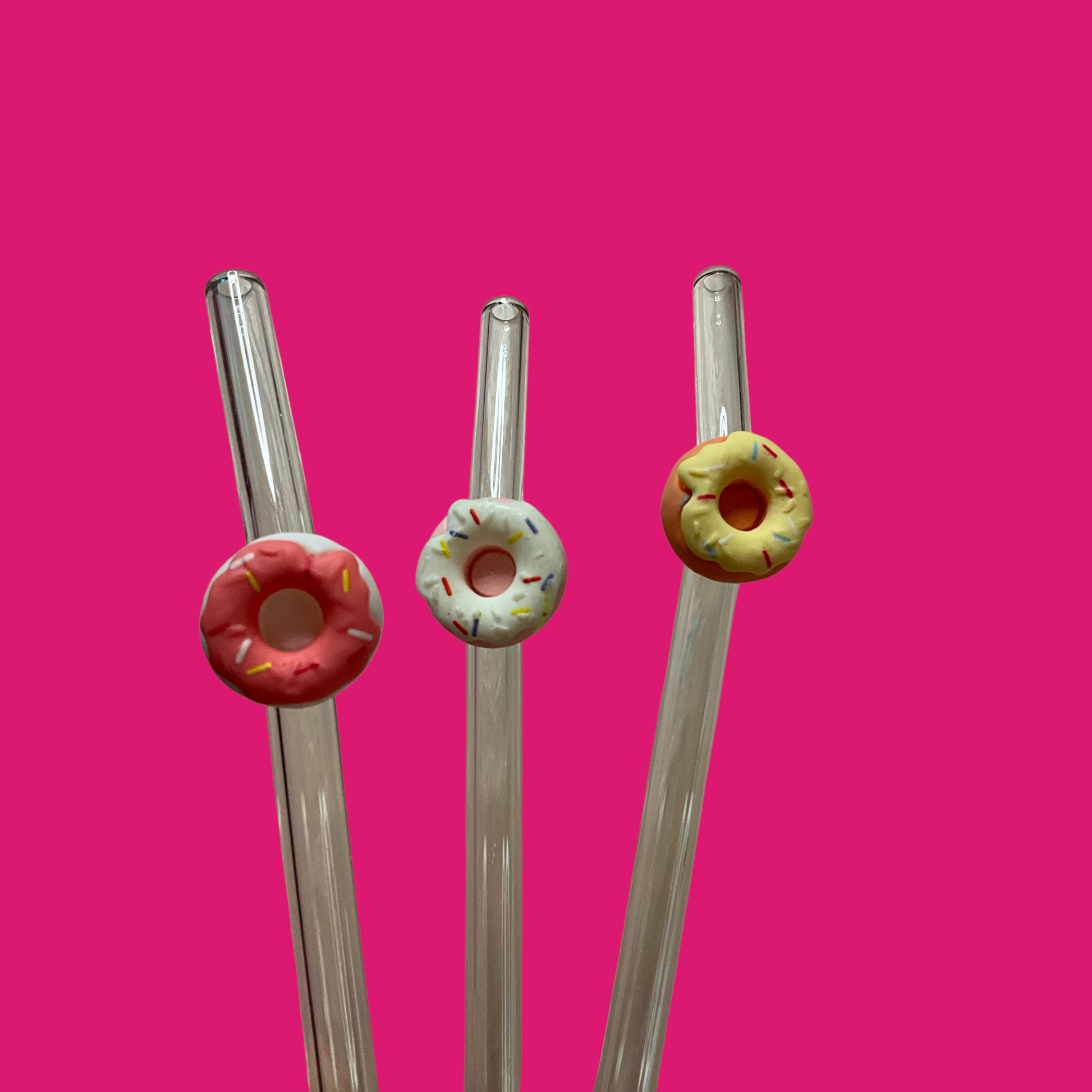 Mach dein Lieblingsgetränk noch süßer – mit unseren Glastrinkhalmen inkl. Mini-Donut-Deko! 🥤✨