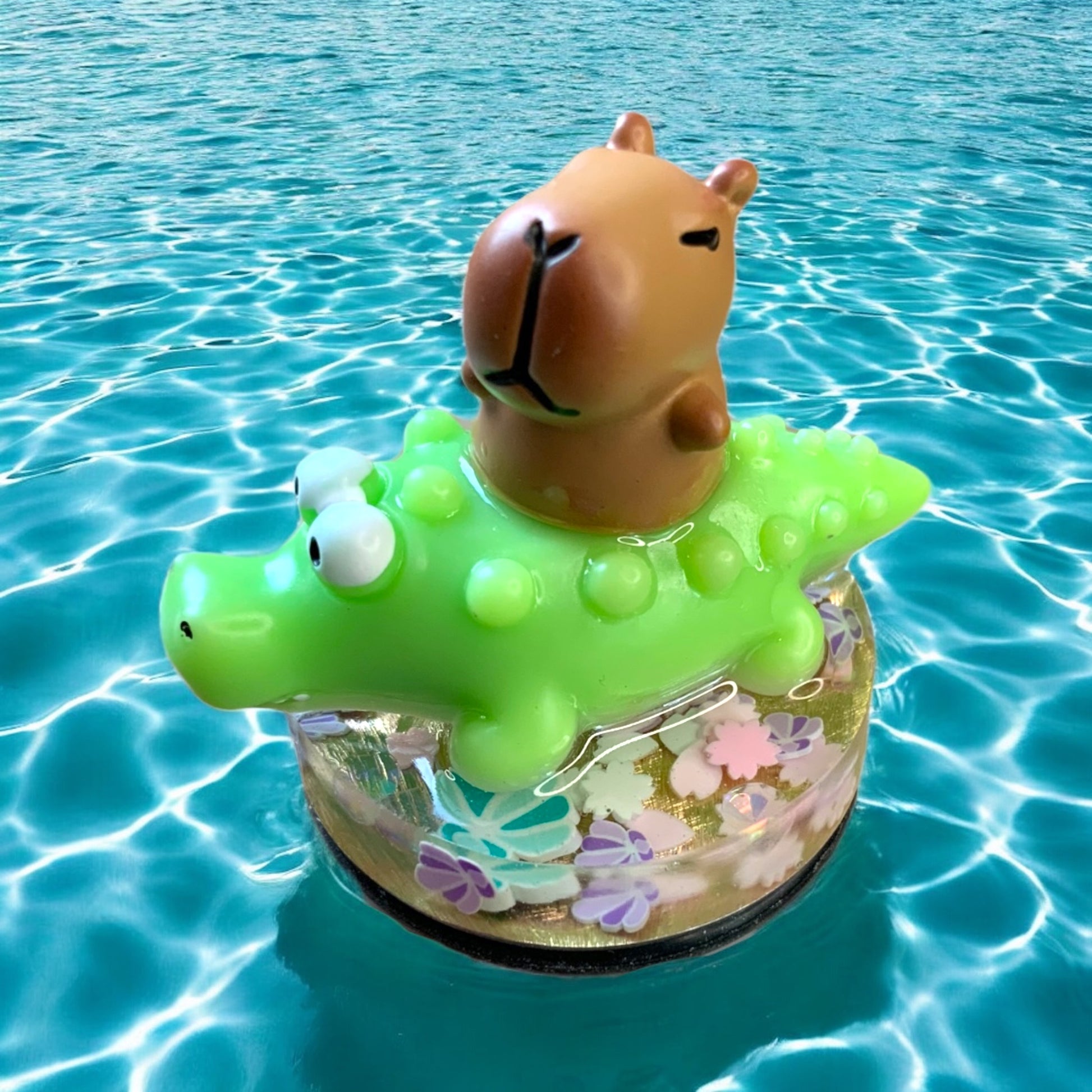 Capybara auf Krokodil – handveredelter Waschbeckenstöpsel mit Stilbruch und Charme