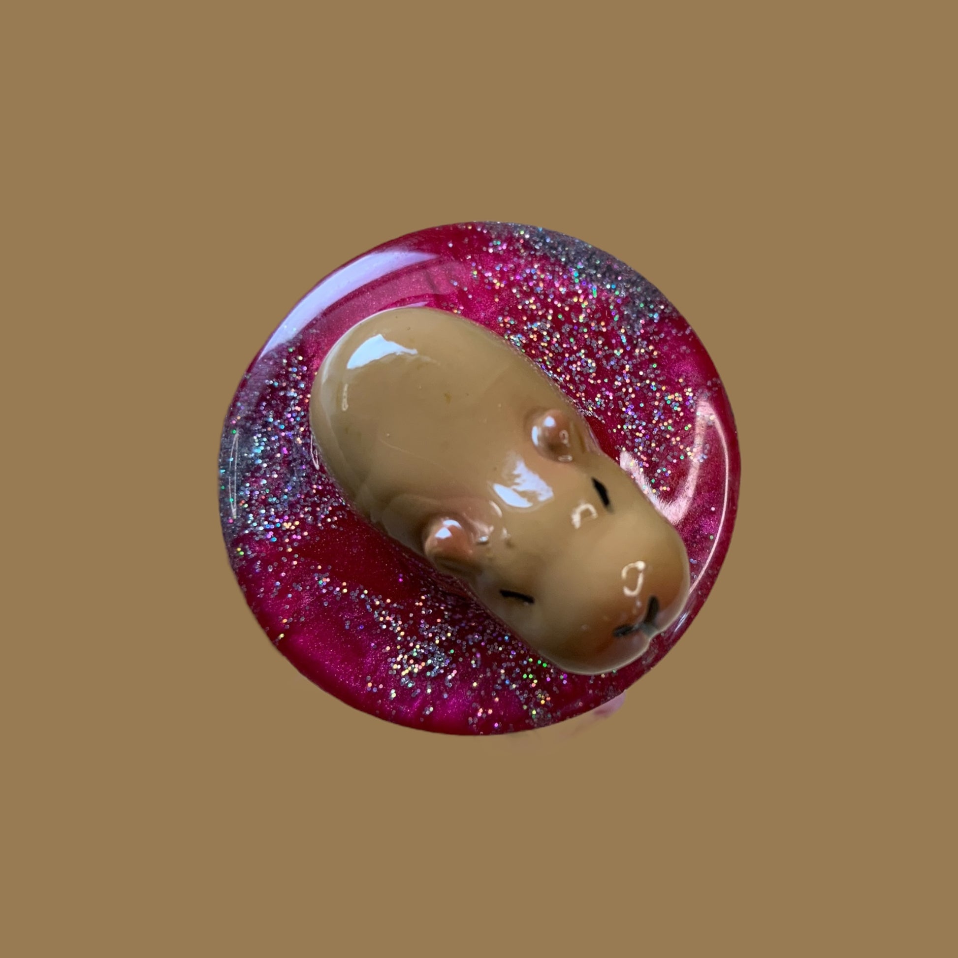 – Oberfläche: glitzernder rot-pinker Resin-Look mit Effekt-Schimmer