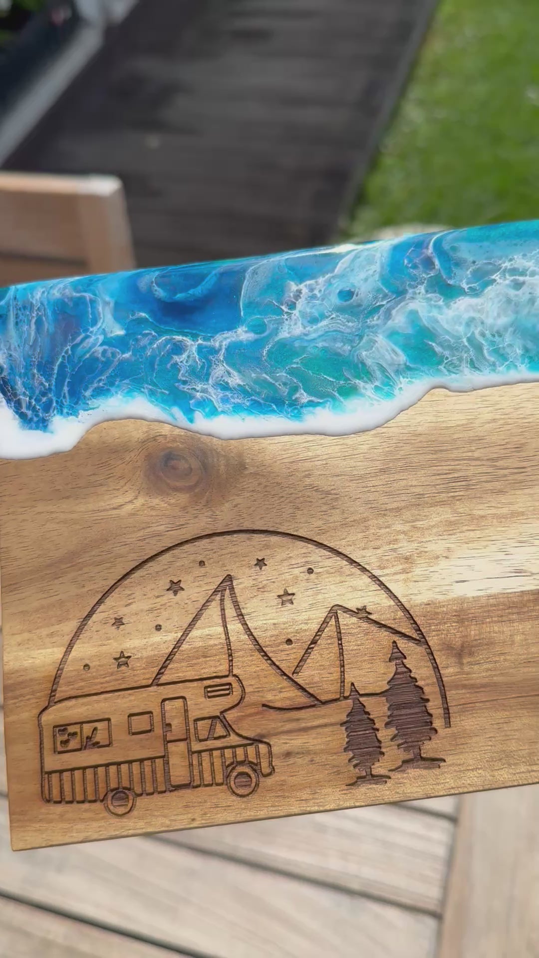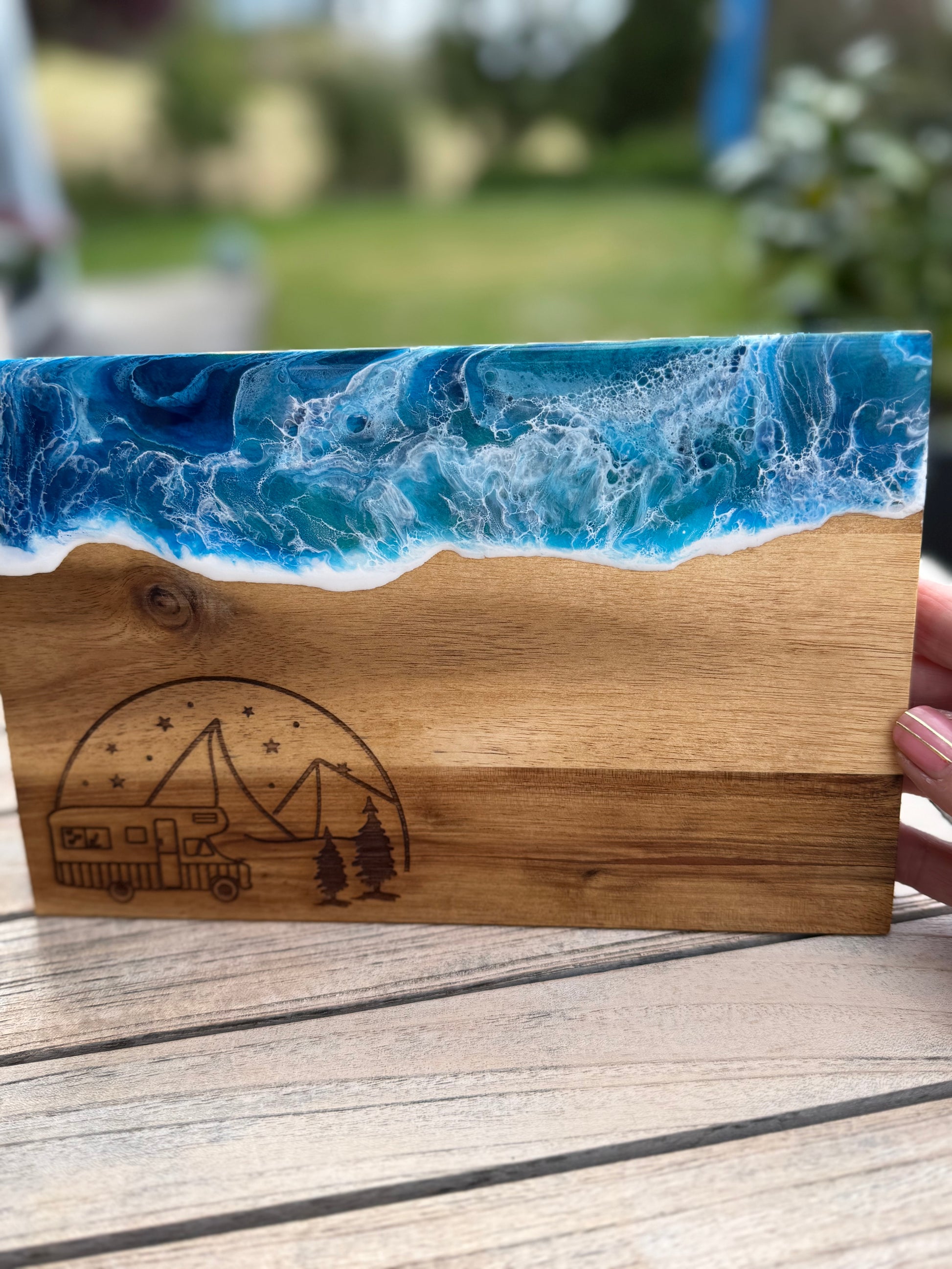 Ob als Frühstücksbrett, Campingbegleiter oder stilvolle Geschenkidee: Dieses Brett bringt Urlaubsgefühl & Ozeanliebe in deinen Alltag. Ideal kombinierbar mit unseren handgemachten Resin-Untersetzern oder Trinkgläsern im Ocean-Look – jetzt im Shop entdecken!