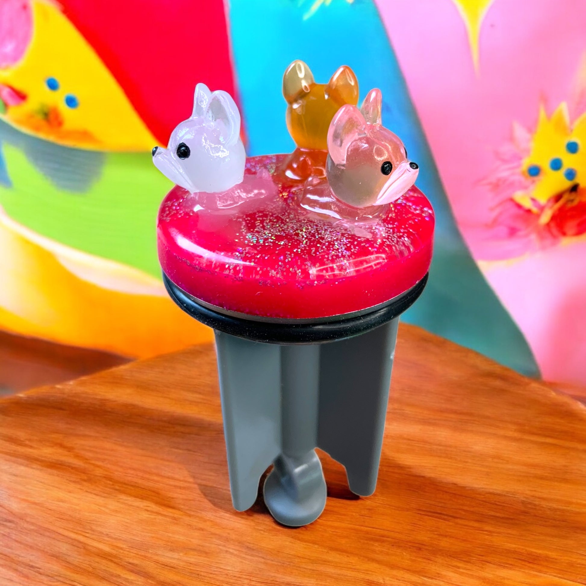 Dieser Waschbeckenstöpsel bringt dir gleich drei zuckersüße French Bulldogs in Pink, Orange und Weiß – jede einzelne ein glänzendes Mini-Kunstwerk.