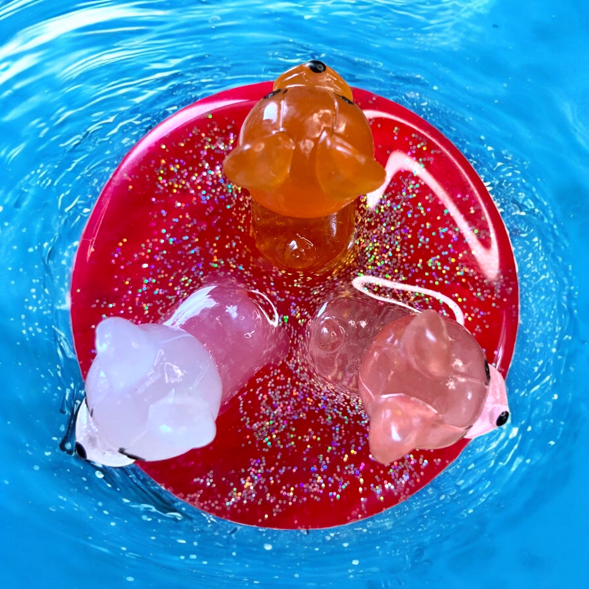 Feine Luftbläschen, Unebenheiten oder Glitzerunregelmäßigkeiten sind typische Zeichen handgefertigter Kunst – und machen jedes Stück einzigartig.