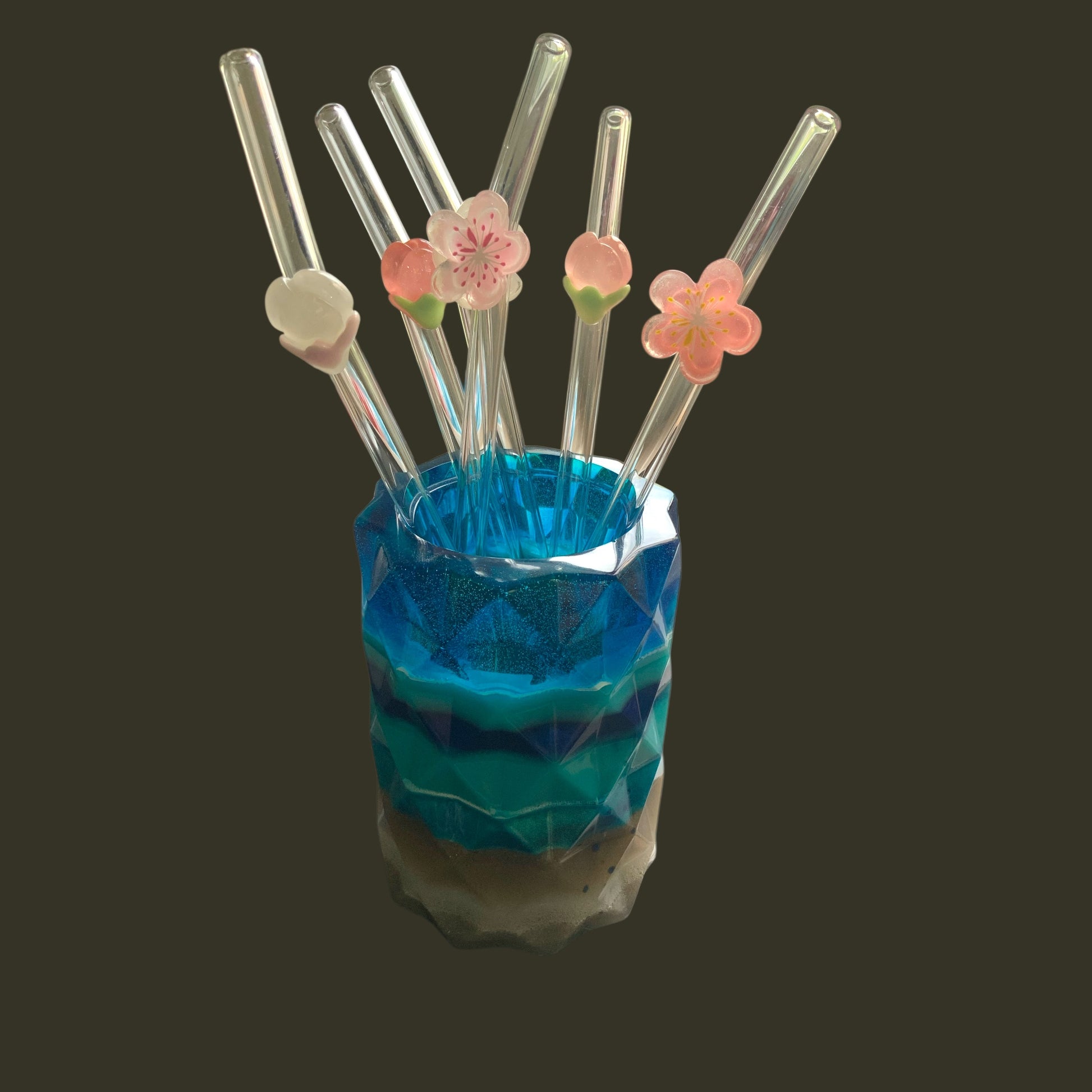 Diese Glastrinkhalme mit zarter Blütenverzierung machen aus jedem Getränk ein kleines Kunstwerk! Ob Kirschblüte, Pfirsich oder Fantasieblume – jede Blüte bringt Farbe und Freude ins Glas.