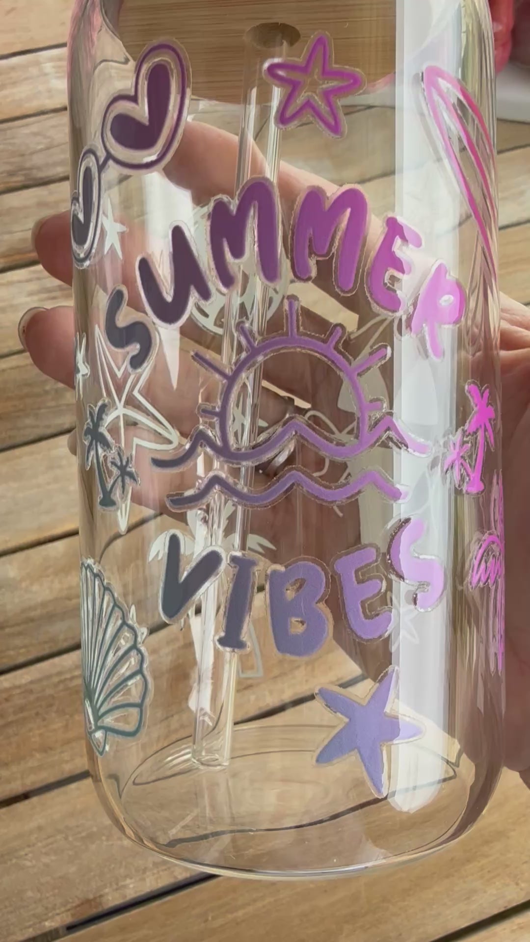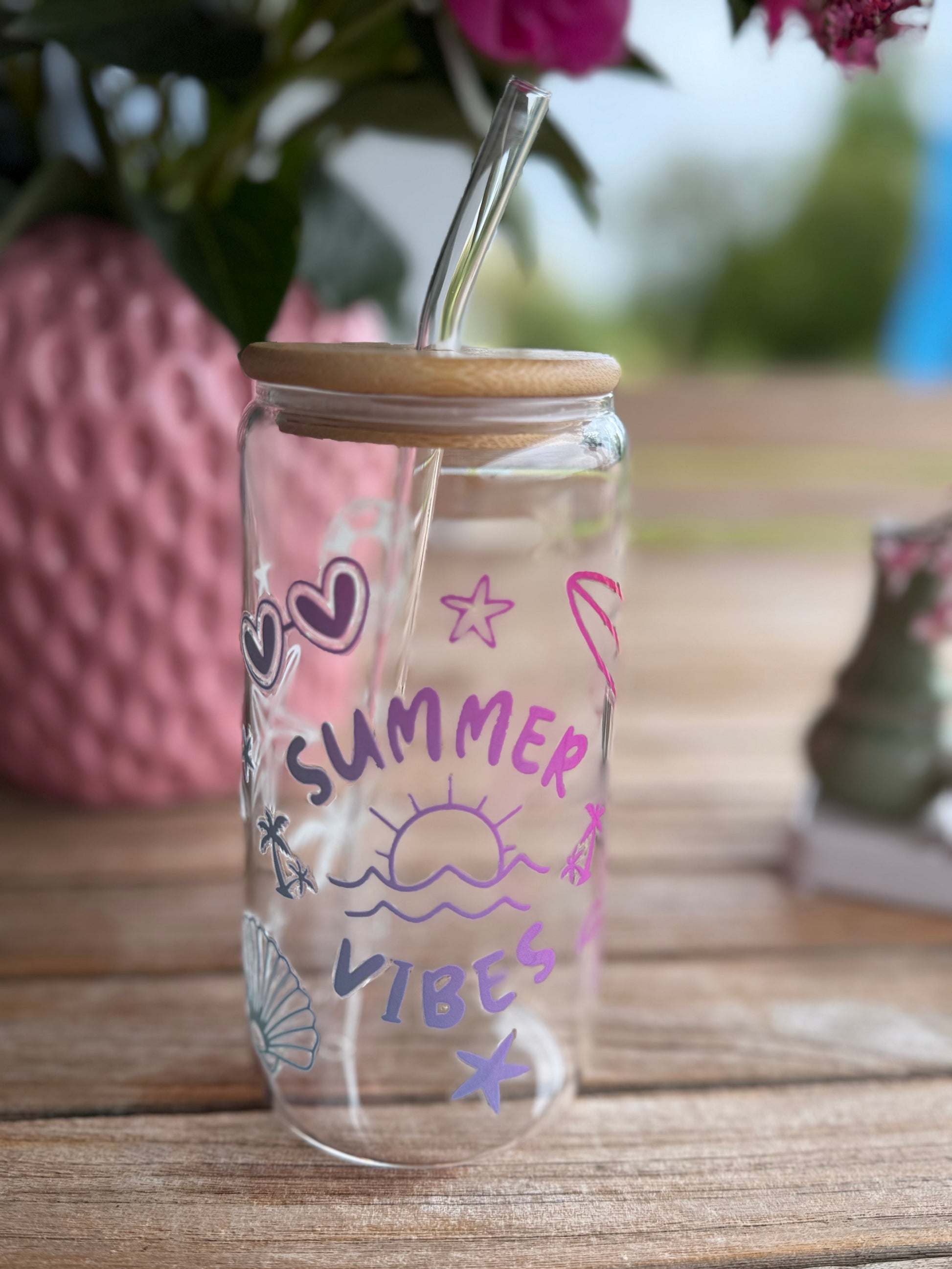 „Summer Vibes“ – handveredeltes Design-Trinkglas für den perfekten Sommerdrink (470 ml / 16 OZ)