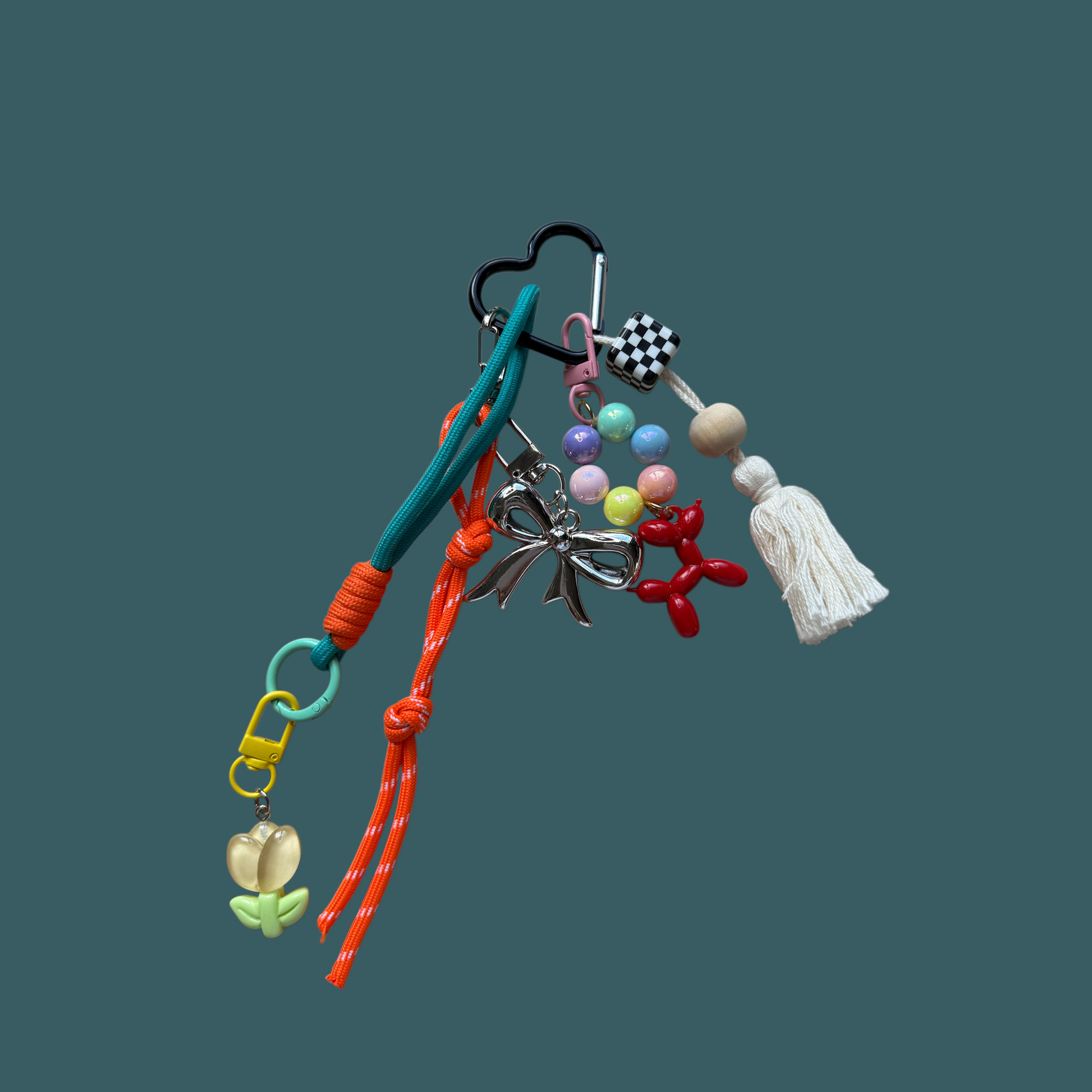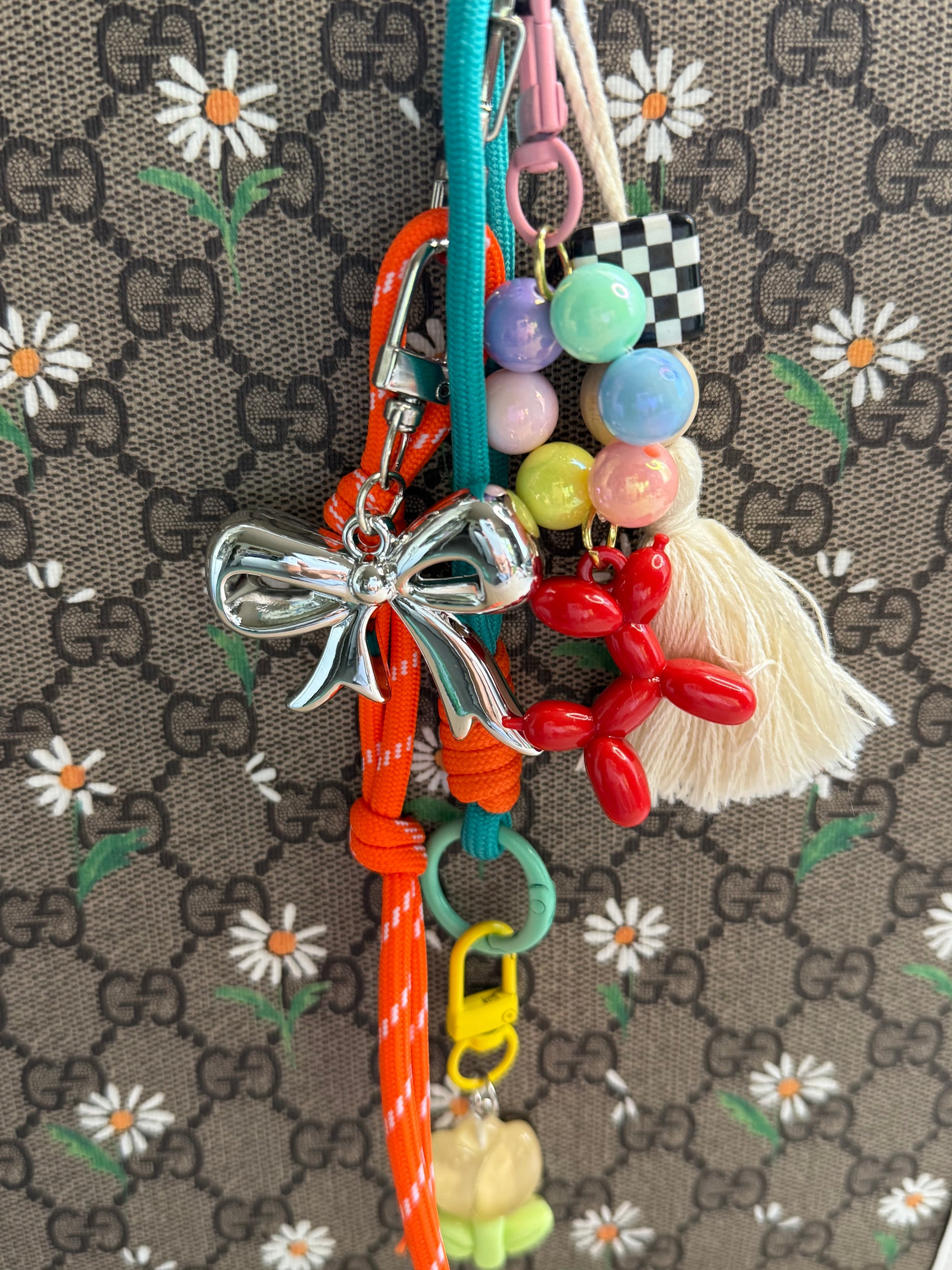 Ob an deiner Tasche, deinem Rucksack oder Schlüssel – dieser charmante Mix aus bunten Perlen, Schleife, Quaste, Ballonhund & Co. bringt gute Laune in deinen Alltag.