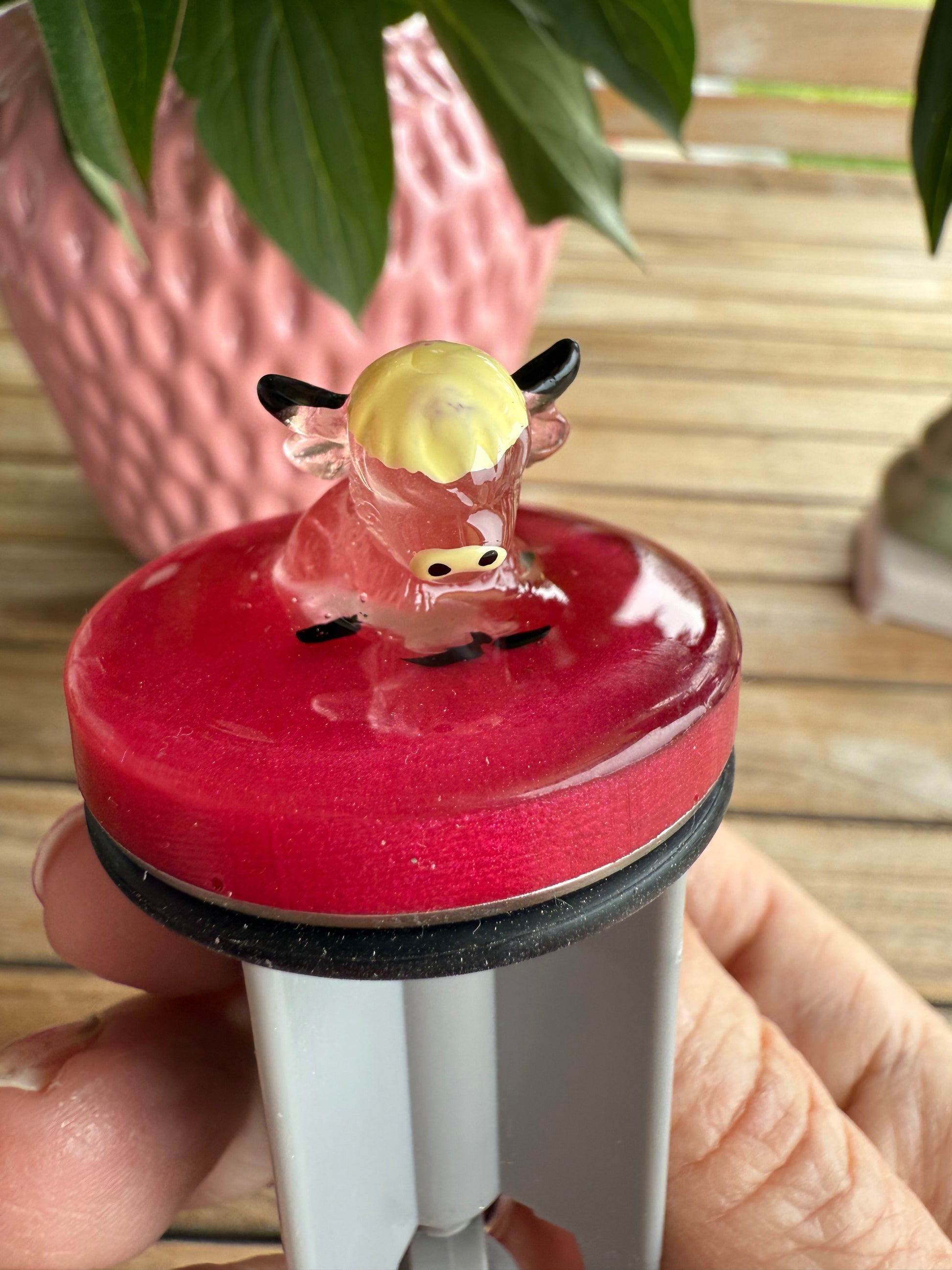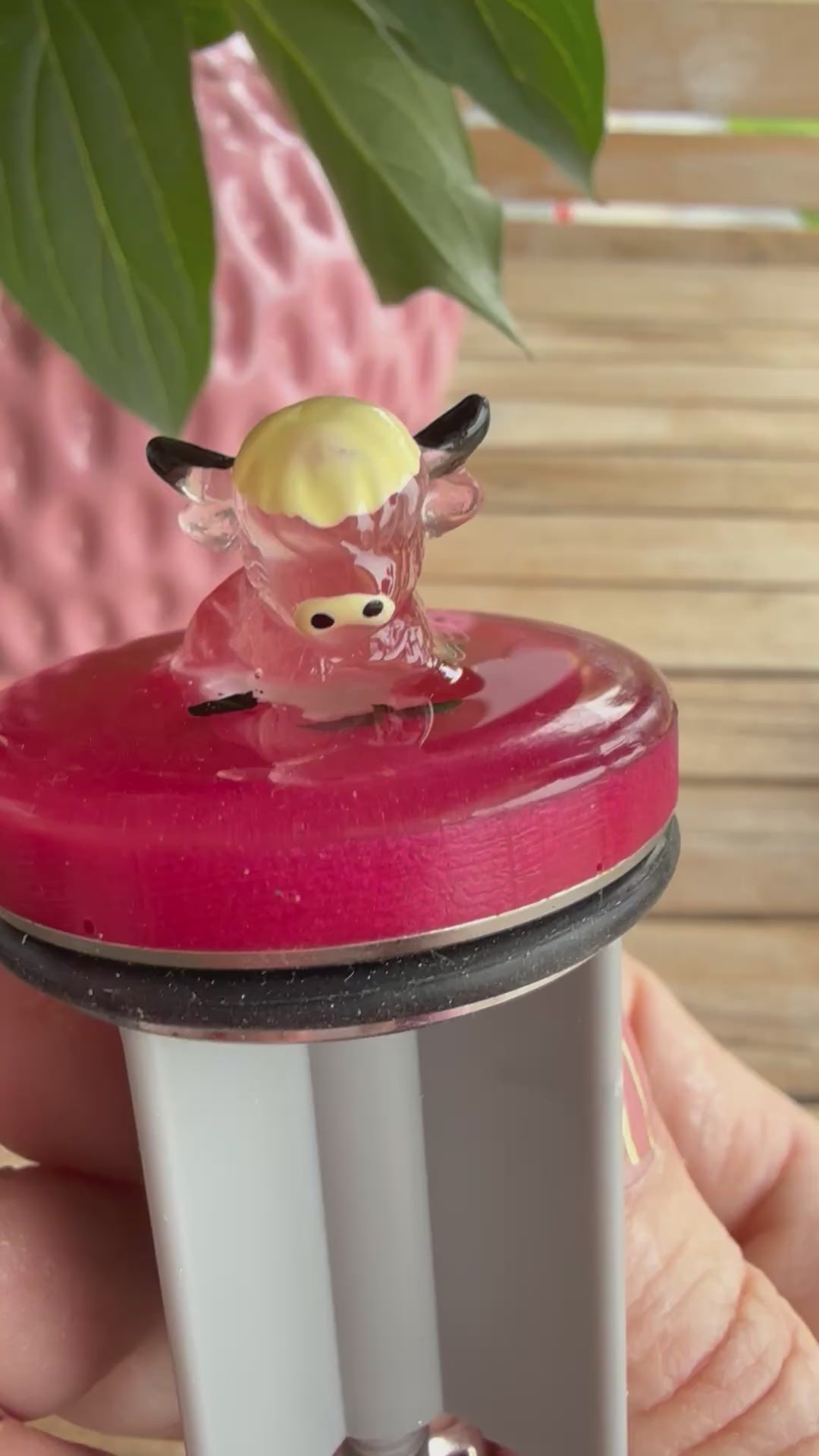 Auf diesem pink schimmernden Resin-Thron sitzt ein Highland-Rind! Mit seinem blonden Pony und dem leicht skeptischen Blick bewacht es zuverlässig den Ablauf deines Waschbeckens und sorgt dabei garantiert für Gesprächsstoff.
