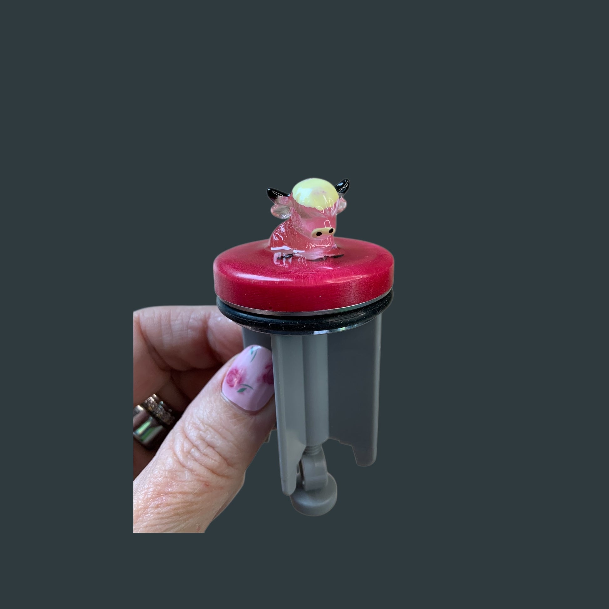 Handveredelter Waschbeckenstöpsel mit Highland-Rind – leicht leuchtend & einzigartig