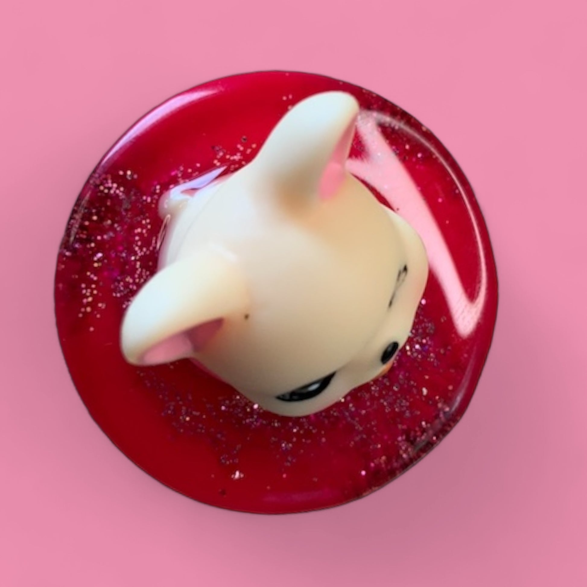 Verziert mit einem niedlichen kleinen Hund auf einer farbenfrohen, glänzenden Resin-Oberfläche, wird dein Waschplatz zum echten Hingucker.