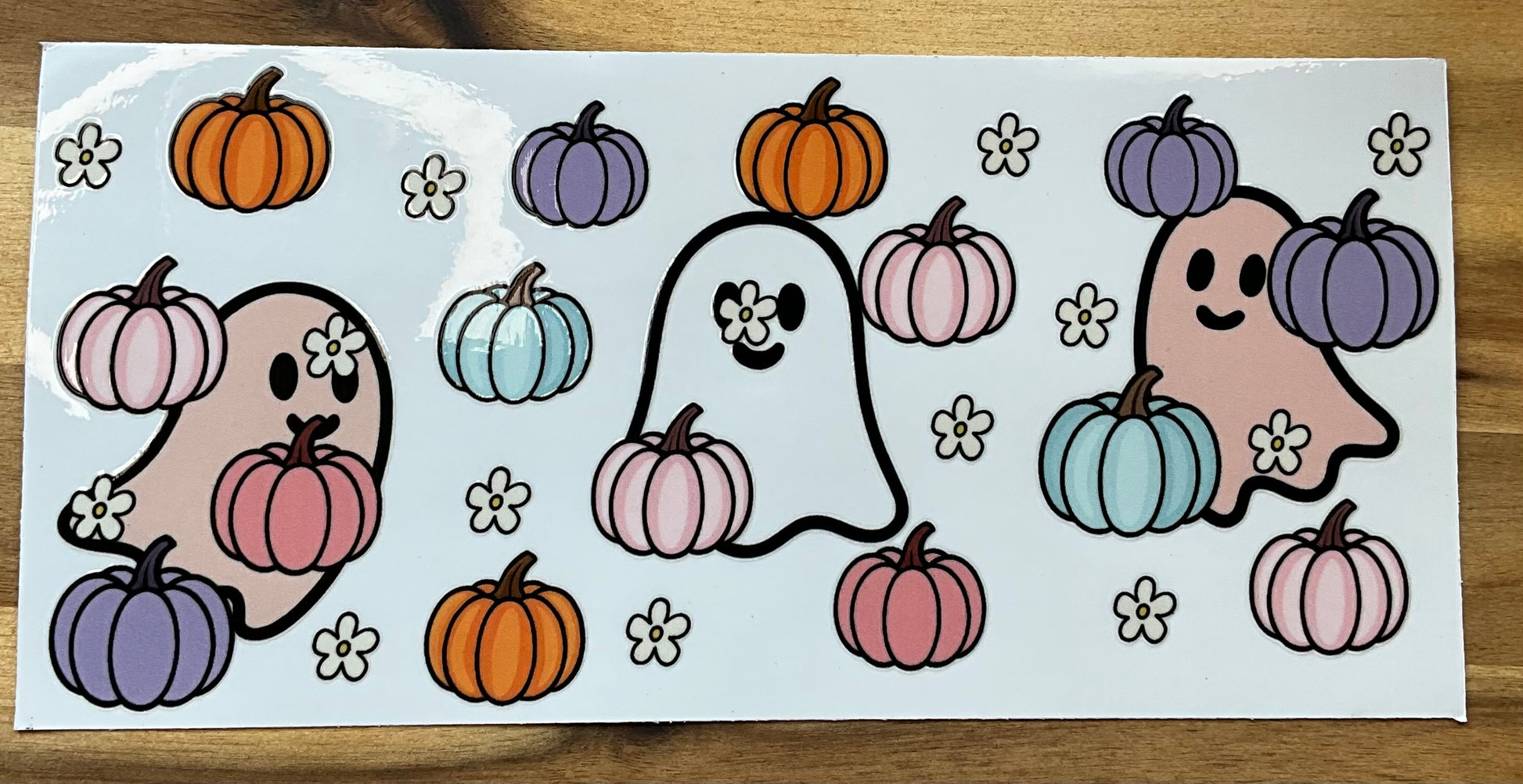 Kürbisse in Pastell mit Geistern und Blumen