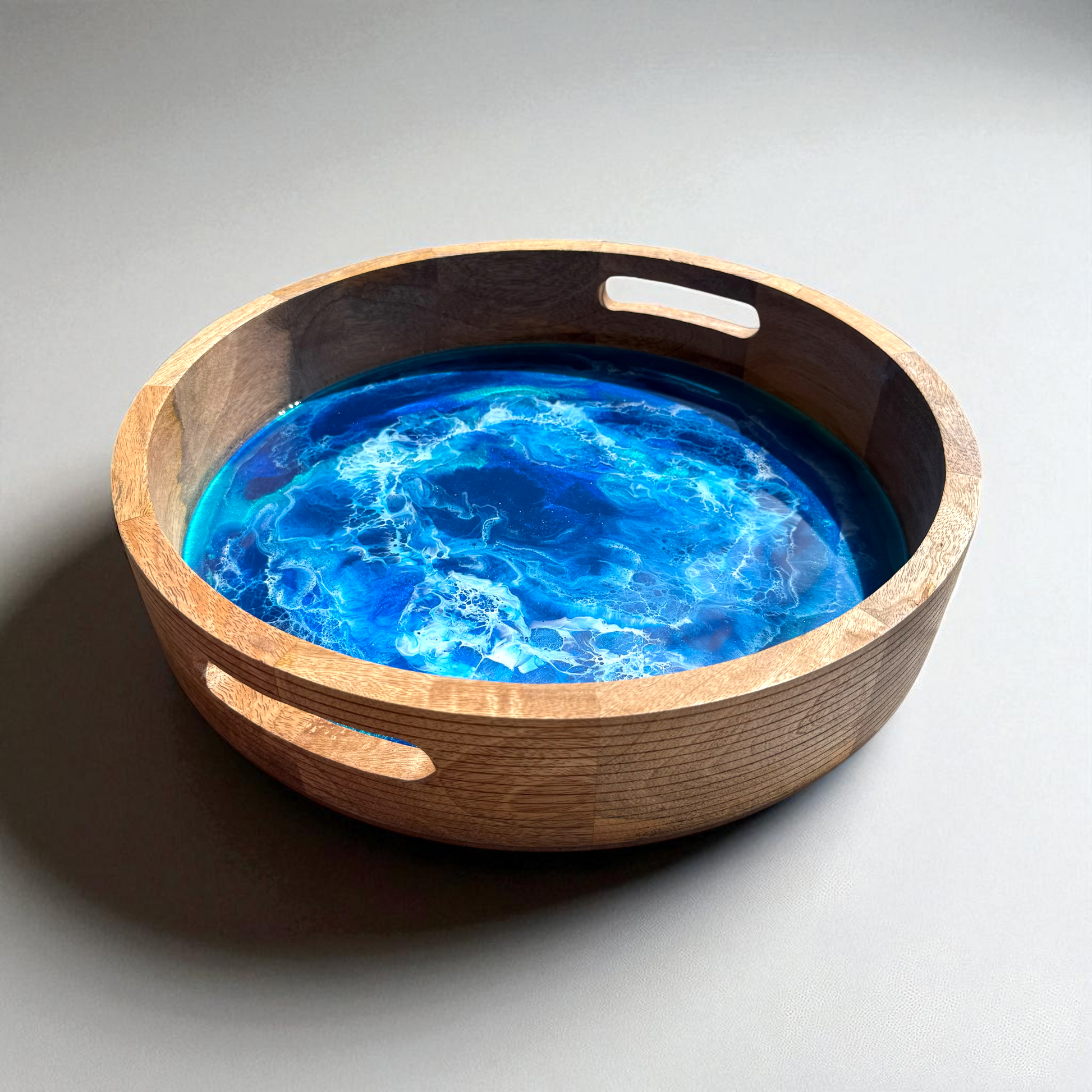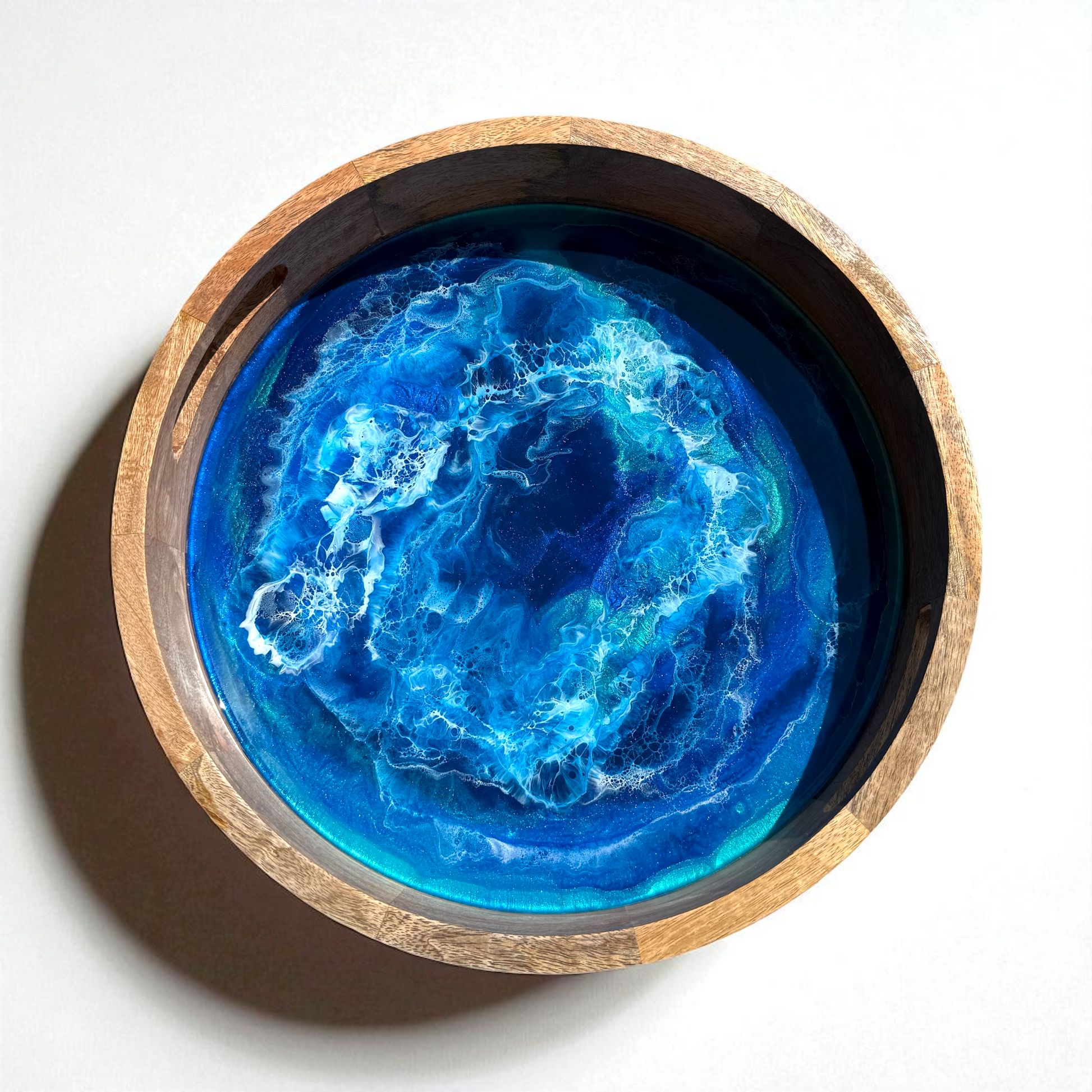 🌊 Ocean Art Tablett „Deep Blue“ – Handgegossenes Unikat aus Mango-Holz