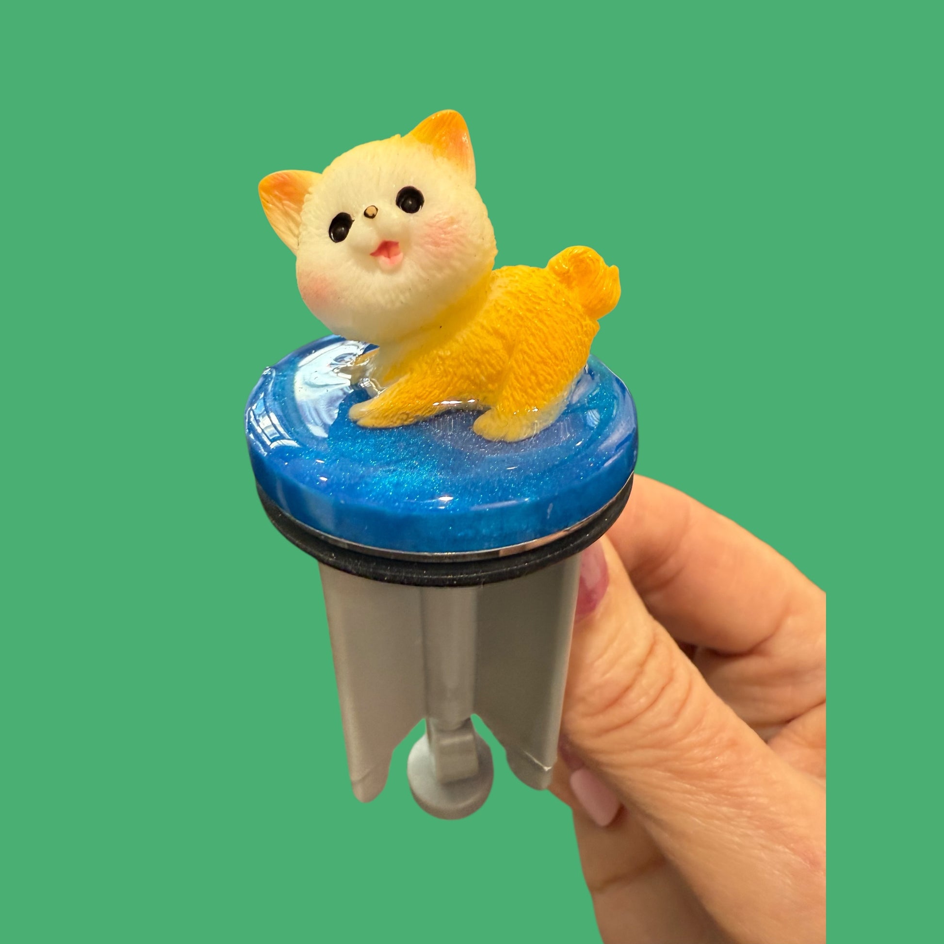 Dieses kleine Kätzchen hat sich einen ganz besonderen Platz ausgesucht – auf einer glitzerblauen Resinharzfläche, mitten im Waschbecken! Der handveredelte 38 mm Standard-Waschbeckenstöpsel bringt nicht nur Glanz, sondern auch Herzschmelz-Garantie in dein Badezimmer.