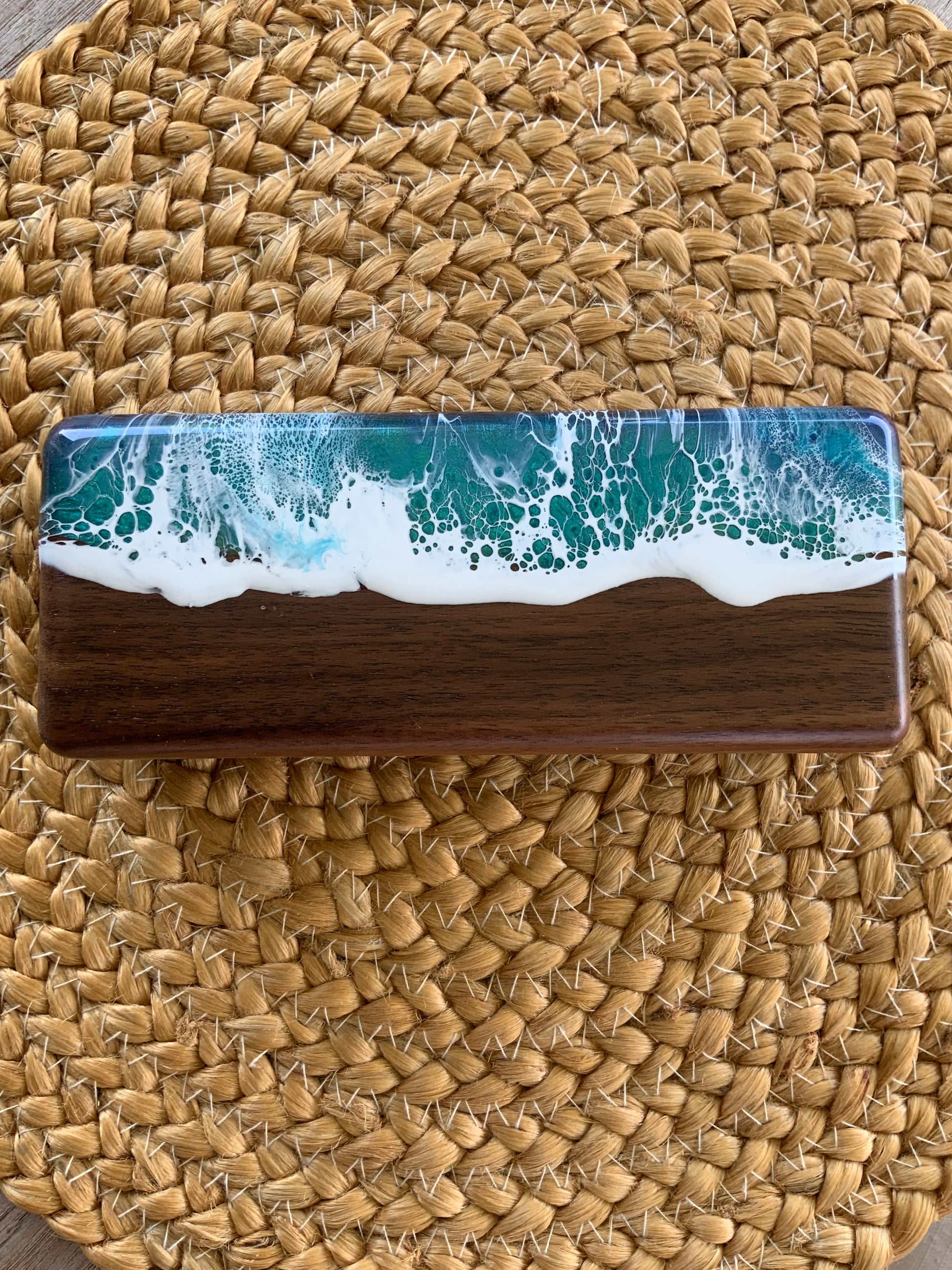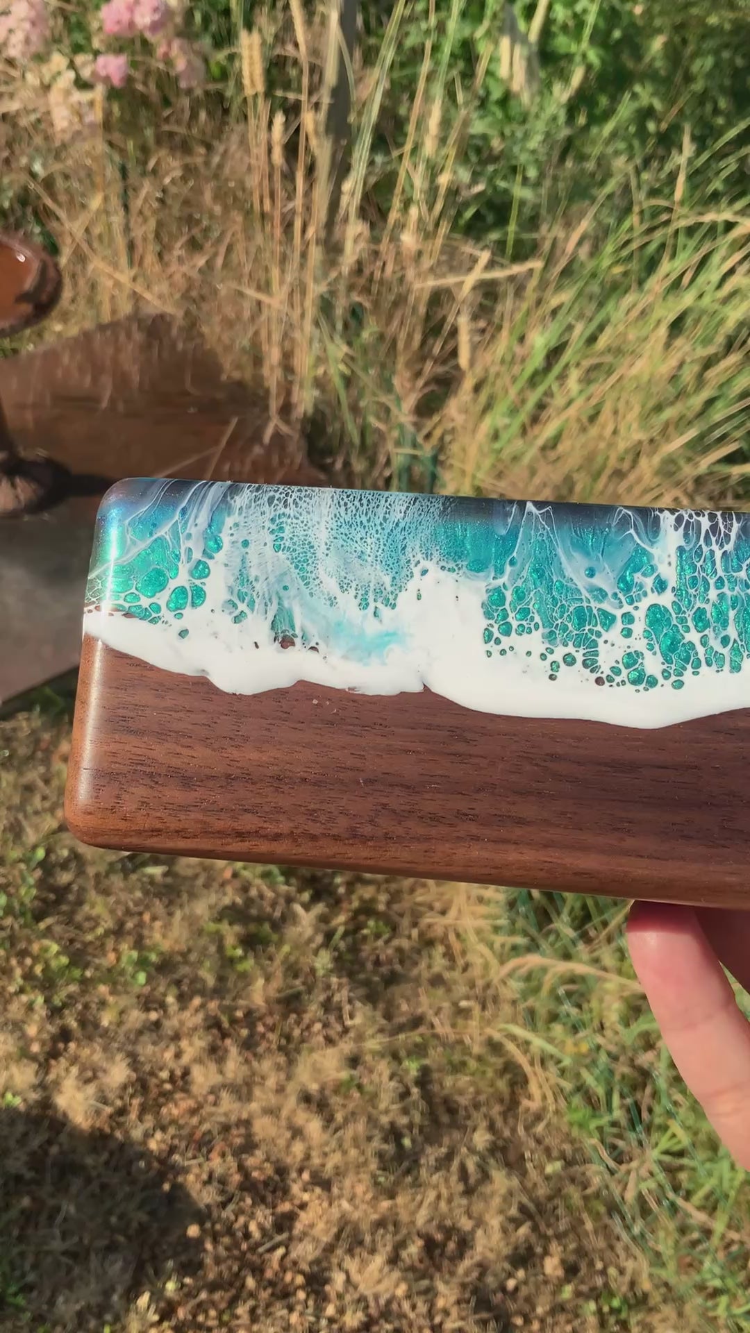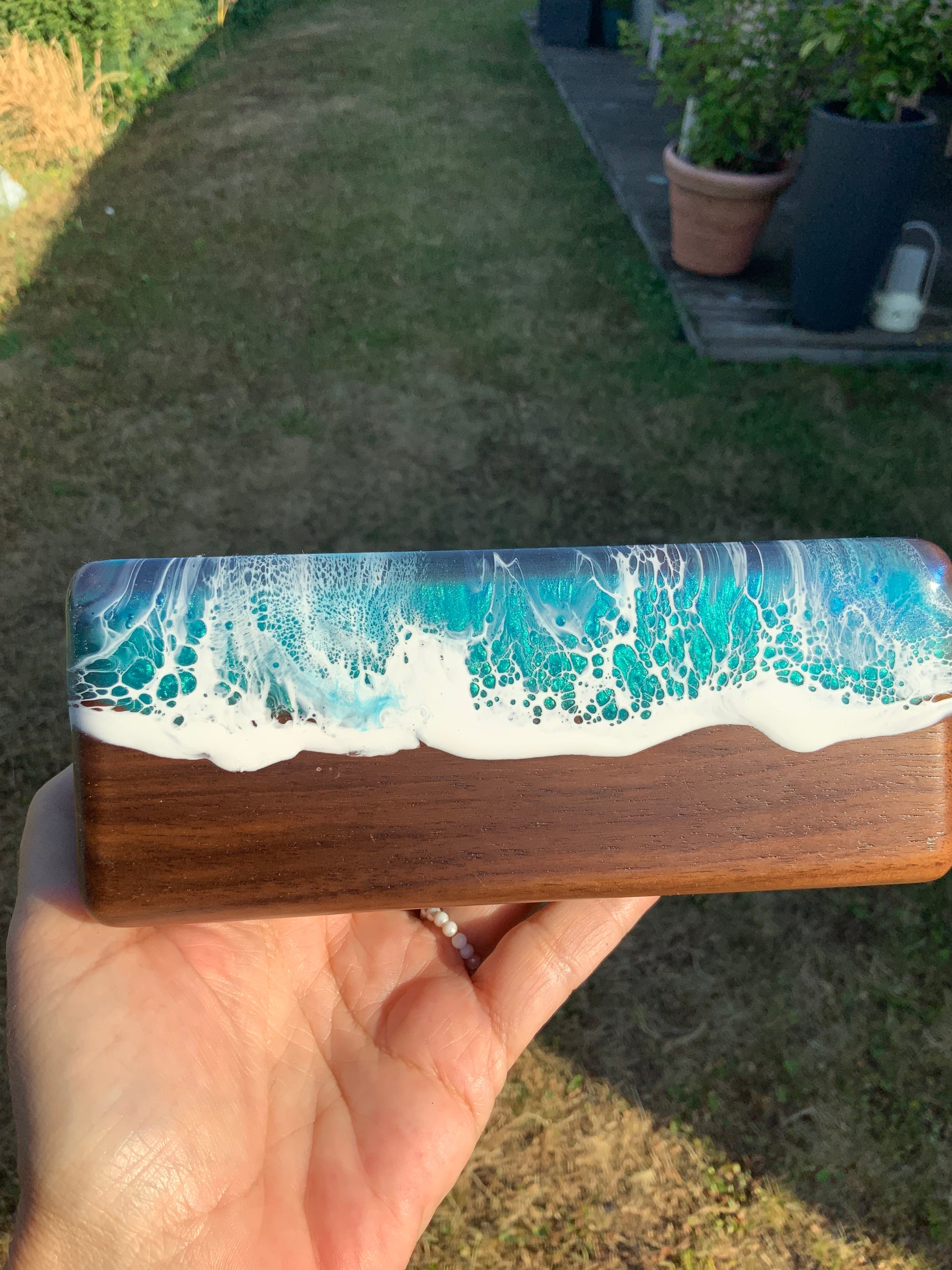 Dieses wundervolle Brillenetui aus Nussbaum, ist von mir mit einer Resinharz Schicht im Ocean Art Design veredelt.