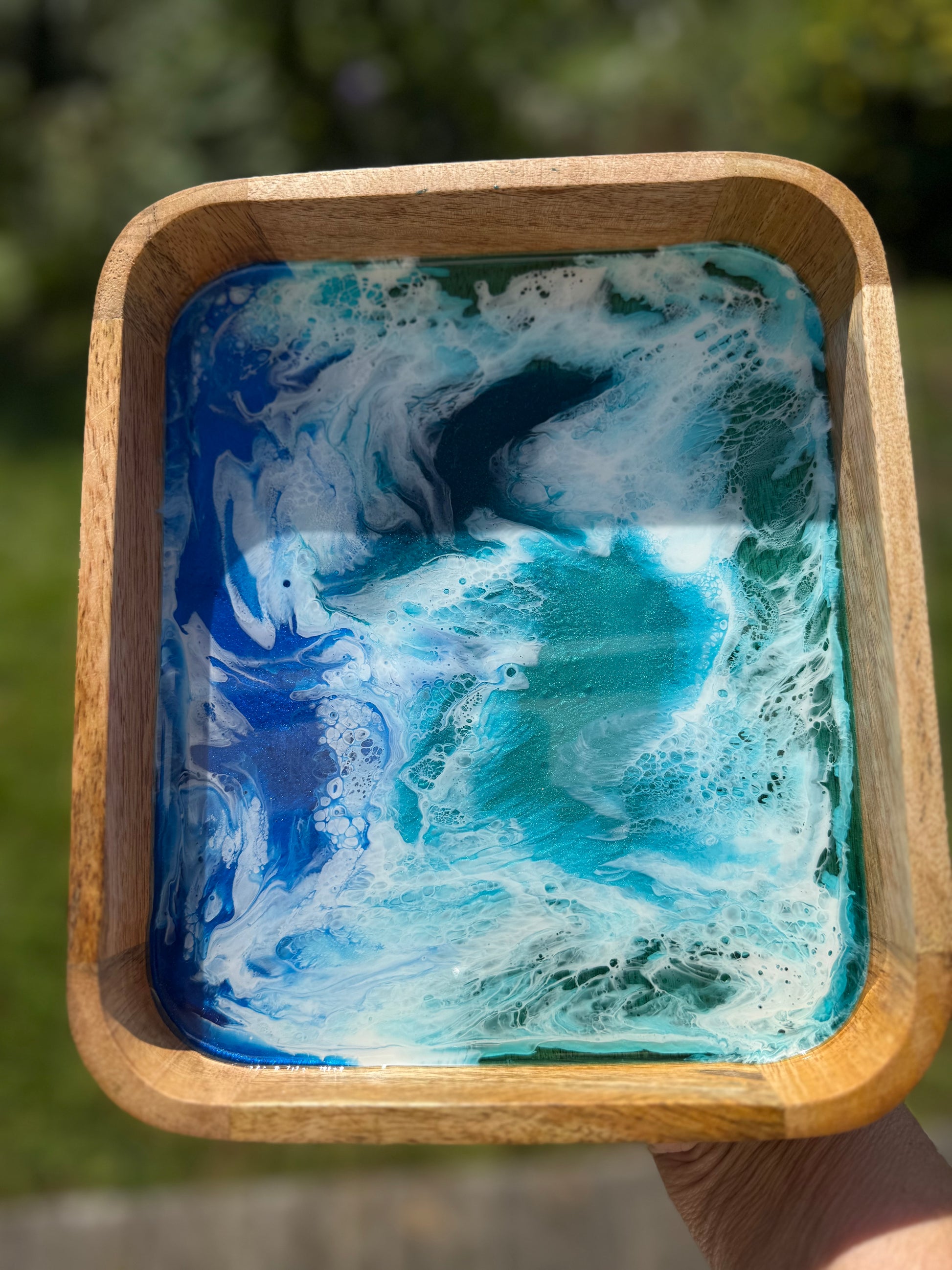 - Material: Mango-Holz mit handgegossenem Ocean Art Resin