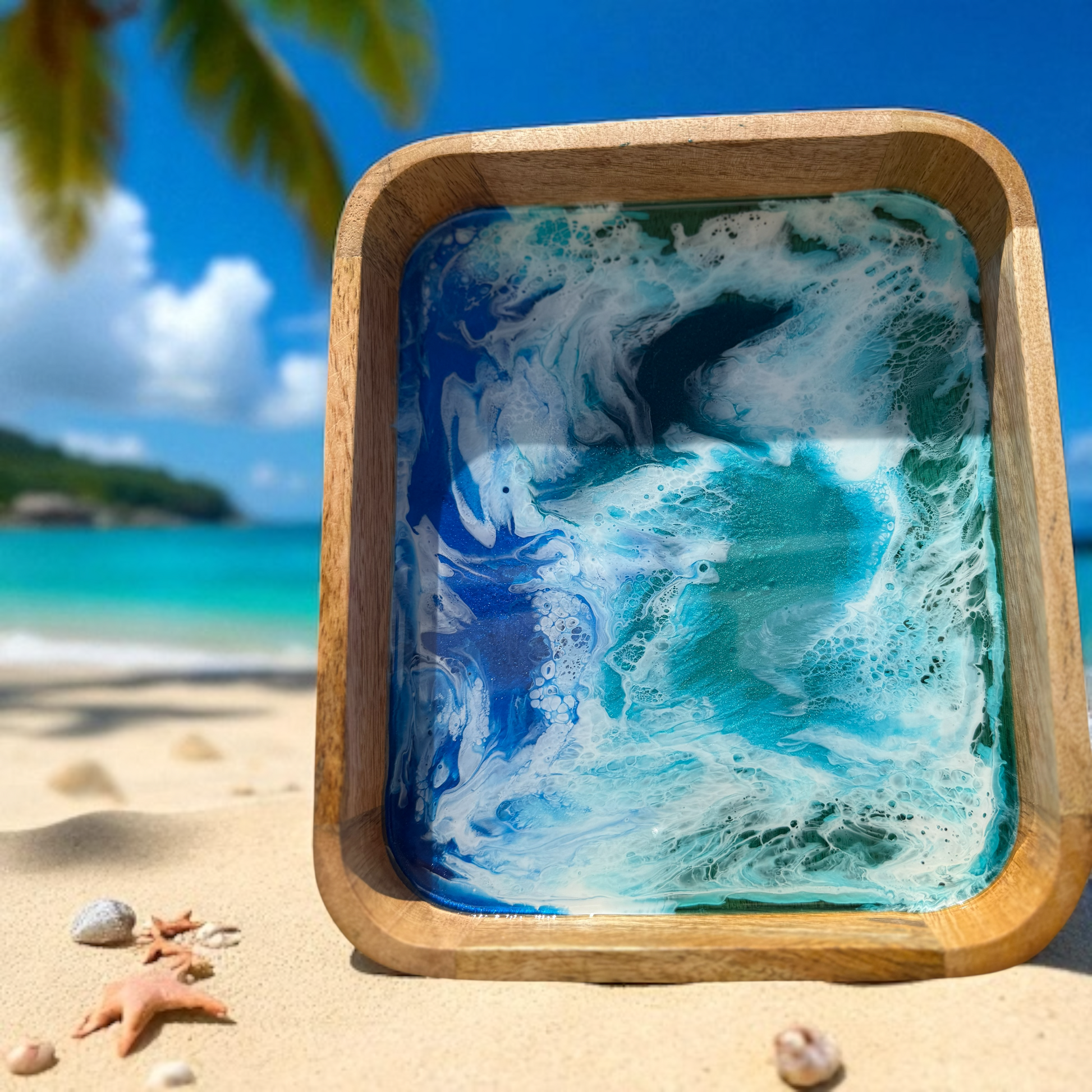 Ob als dekoratives Highlight, als stilvolles Serviertablett oder einfach als Kunstobjekt in deinem Zuhause – dieses Tablett ist ein Unikat, das die Magie des Meeres für immer einfängt.
