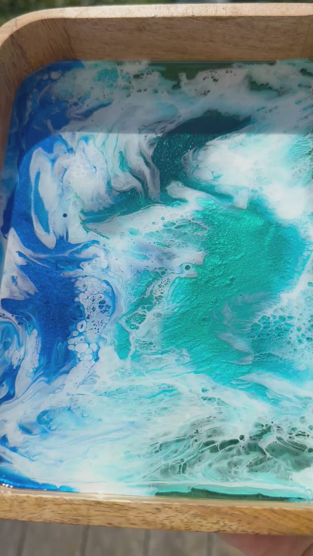In liebevoller Handarbeit habe ich die Oberfläche mit einer schimmernden Resin-Schicht im Ocean Art Design veredelt.