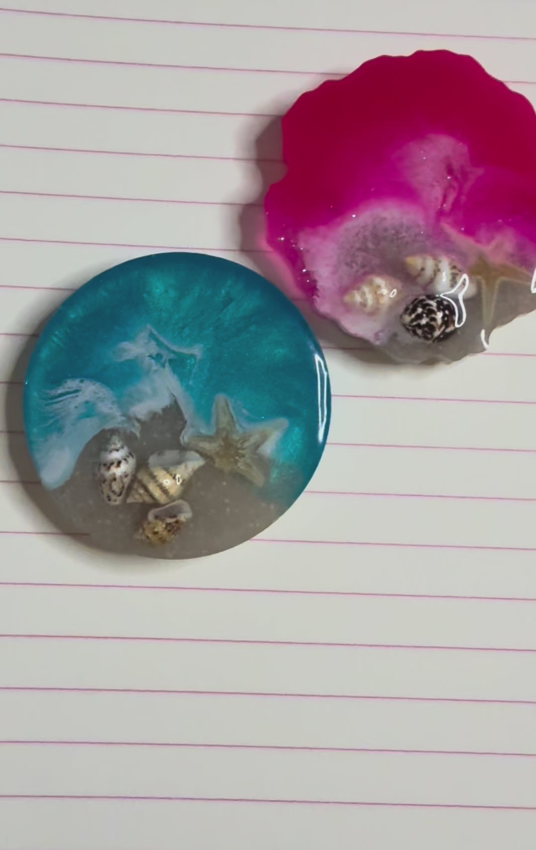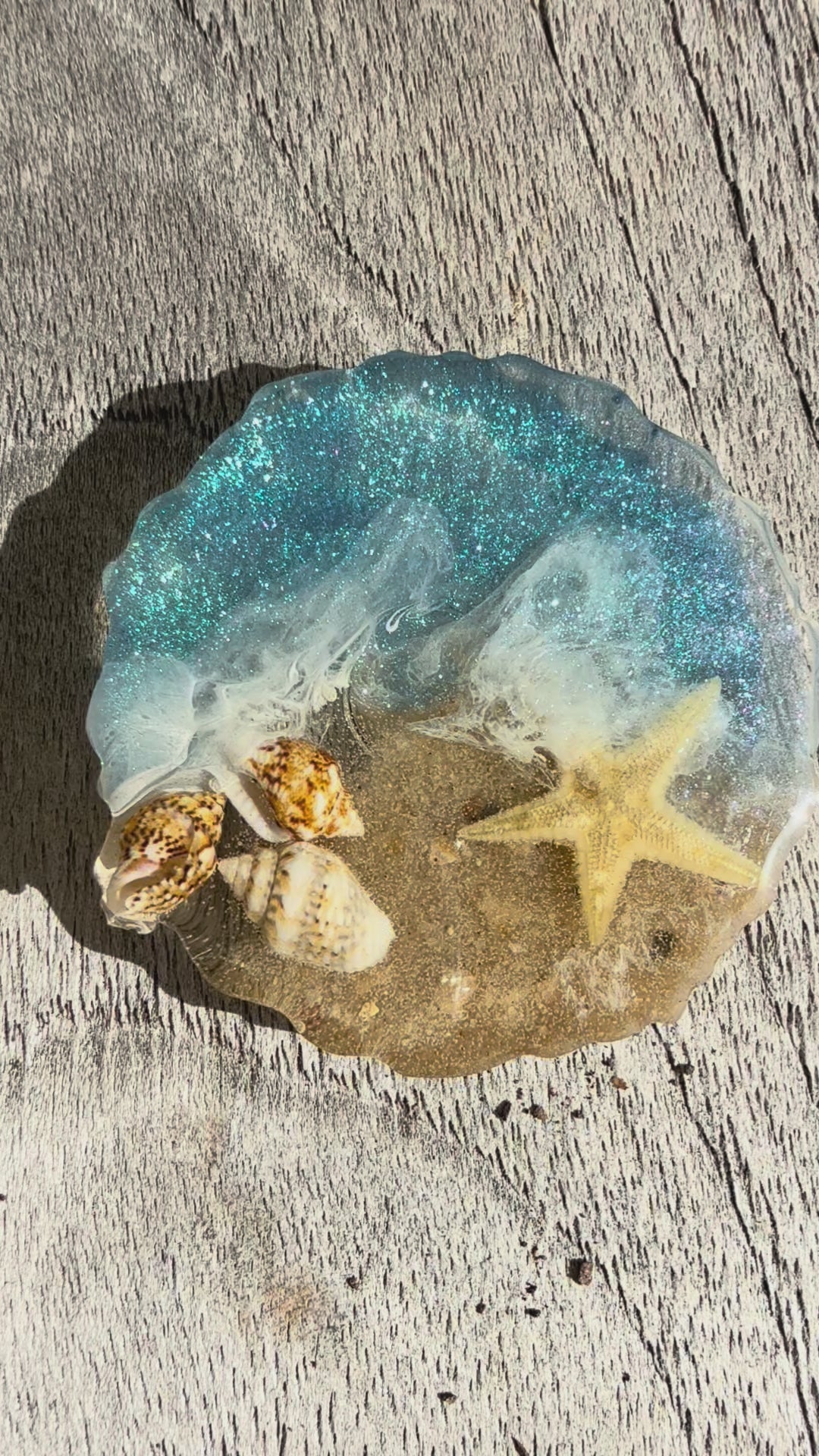Ocean Art Resin-Magnet – handgefertigt mit echtem Sand & Muscheln