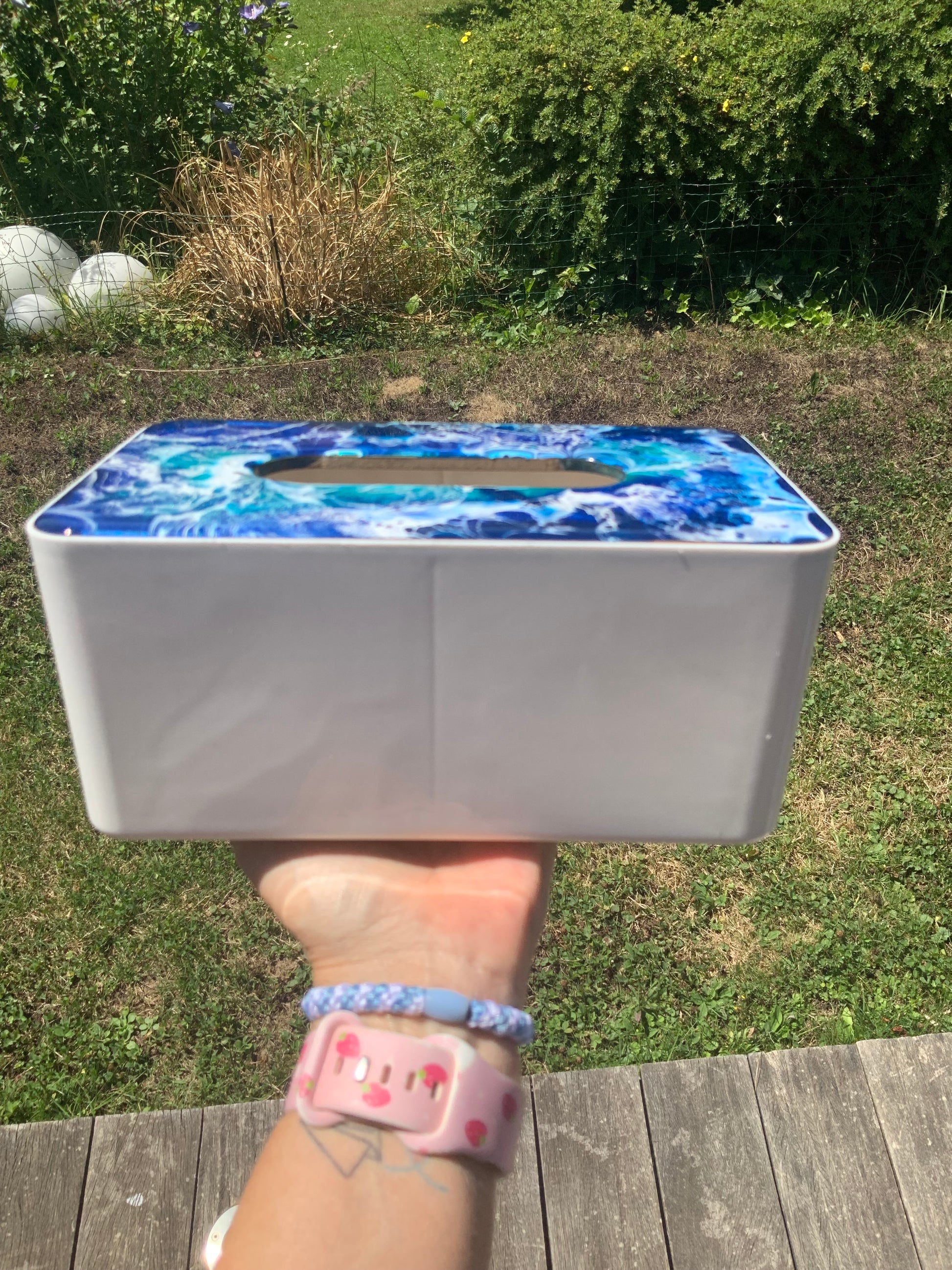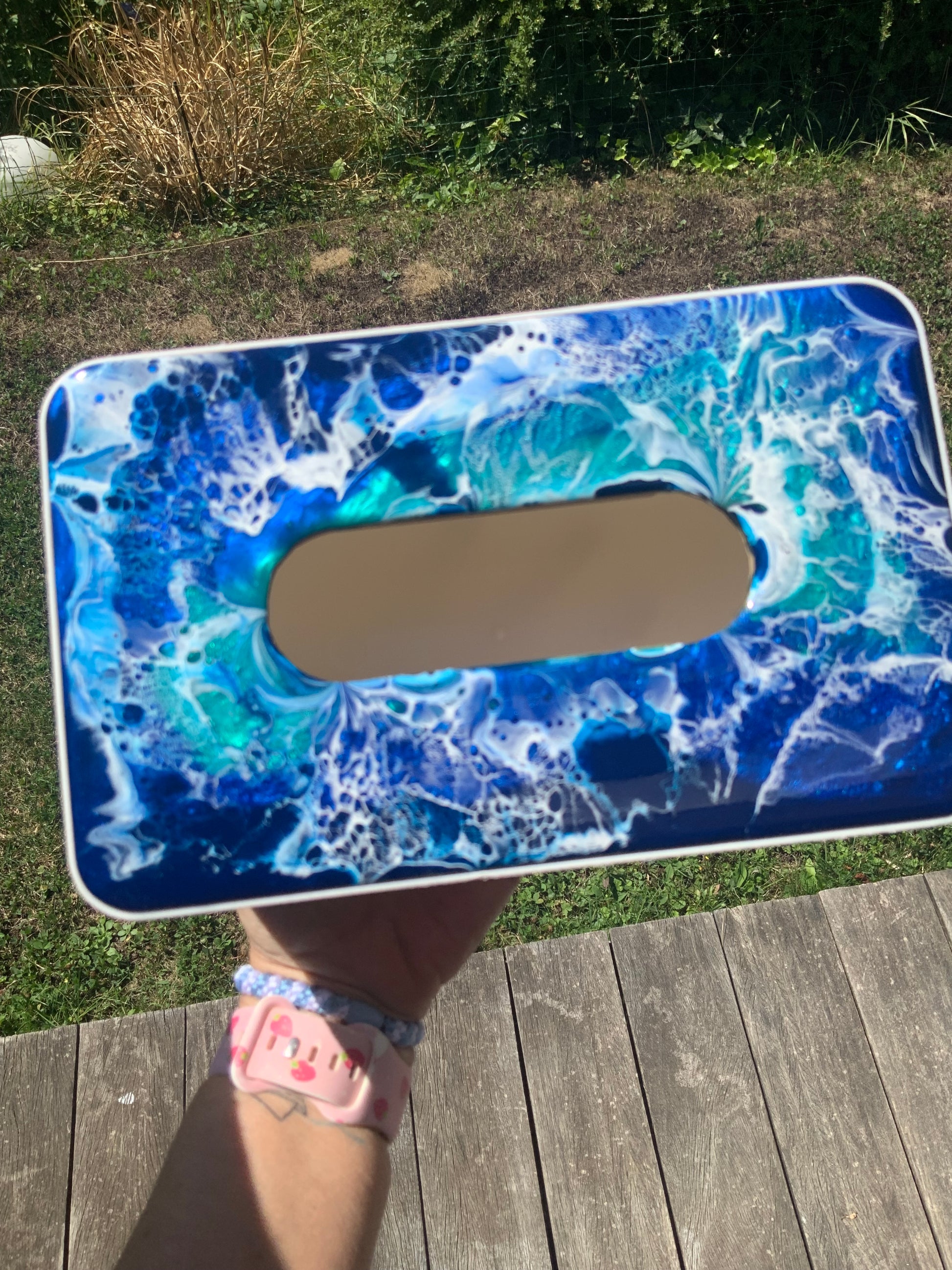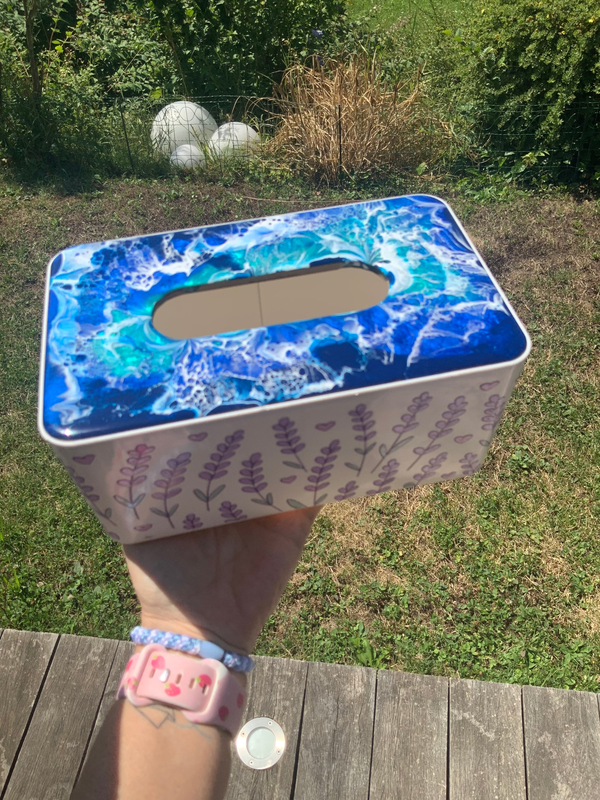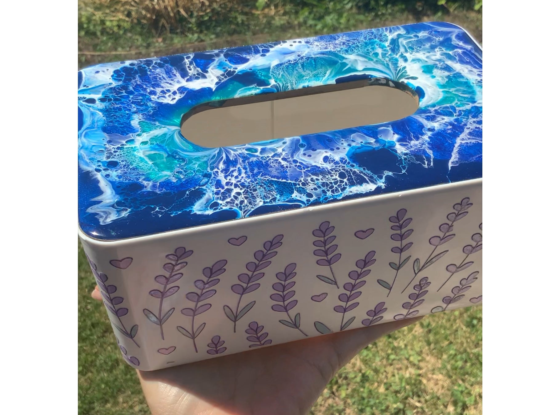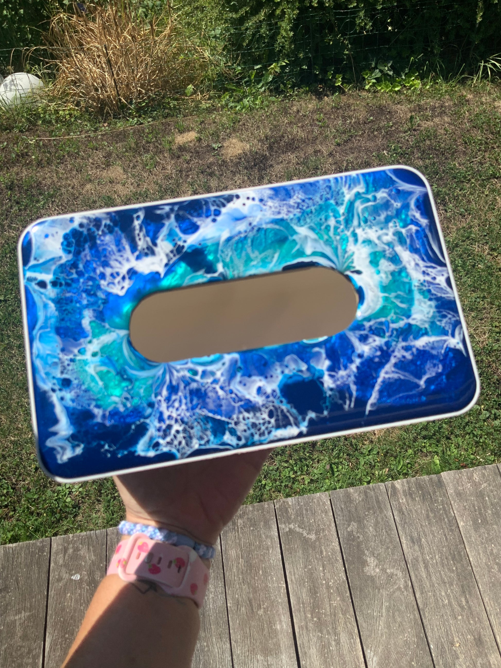 Taschentuchbox mit handveredeltem Resin-Deckel – Ocean Art Unikat
