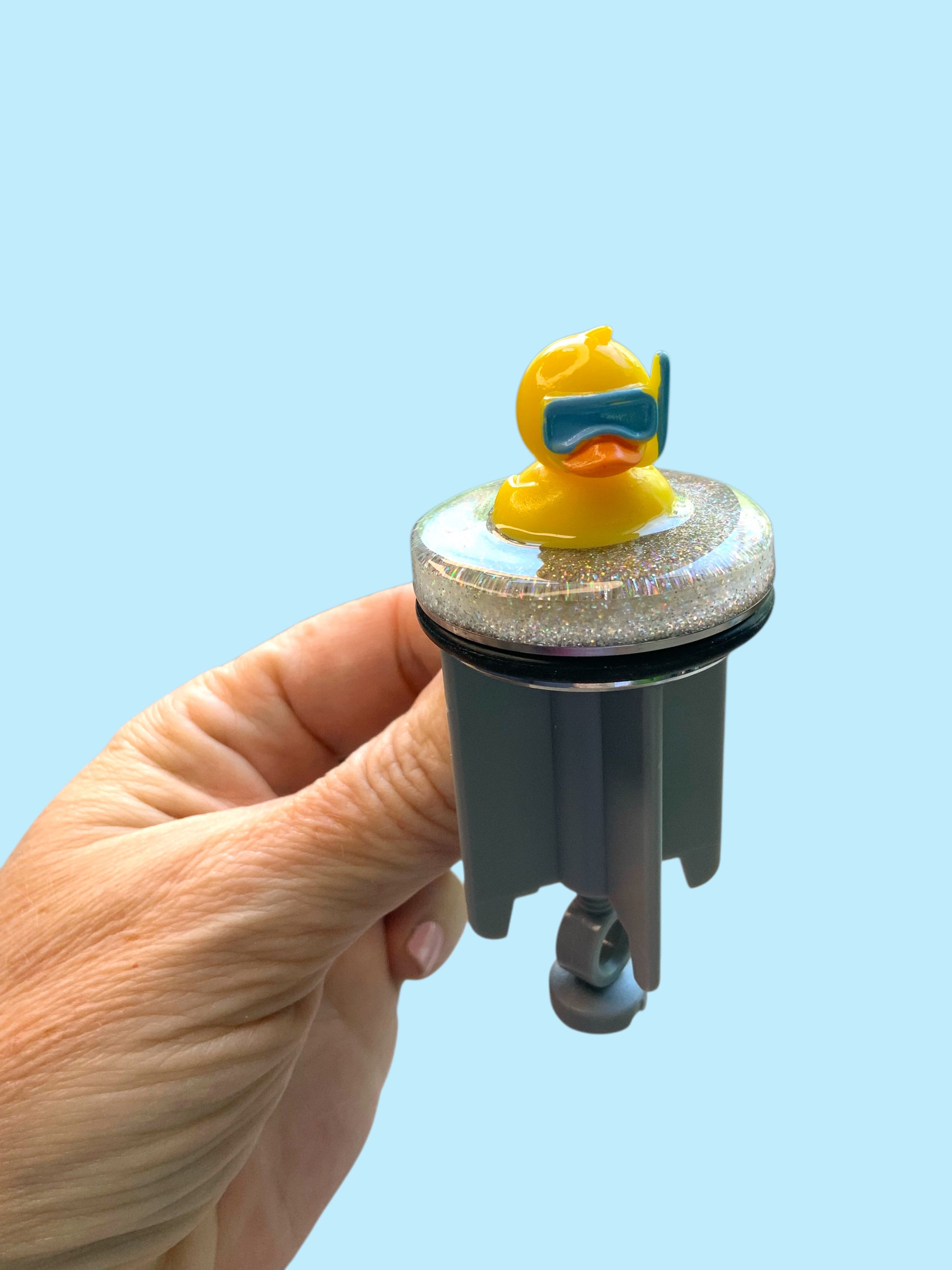 Taucher-Ente im Glitzermeer – Handveredelter Waschbeckenstöpsel