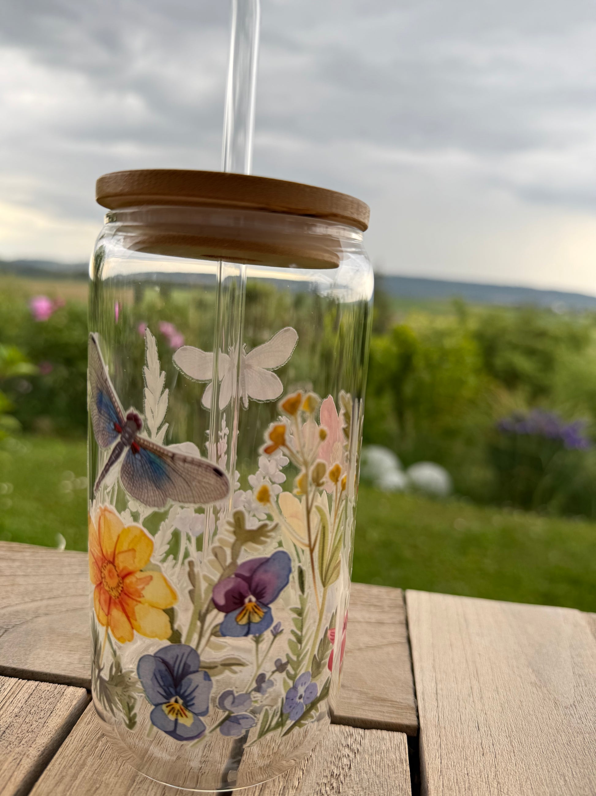 Wildblumen-Design-Trinkglas – 470 ml – Natürlich schön & handveredelt